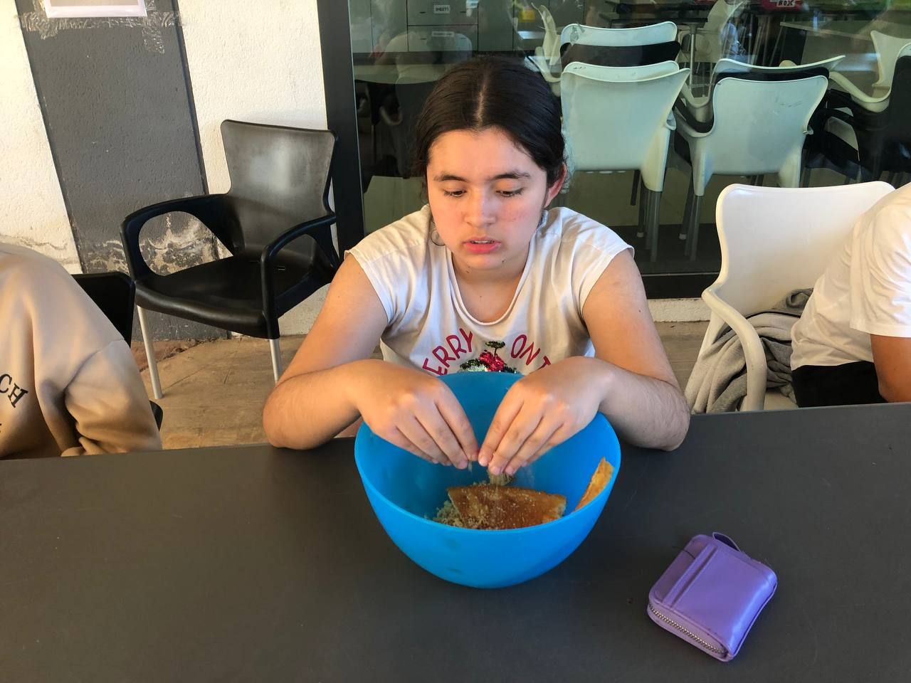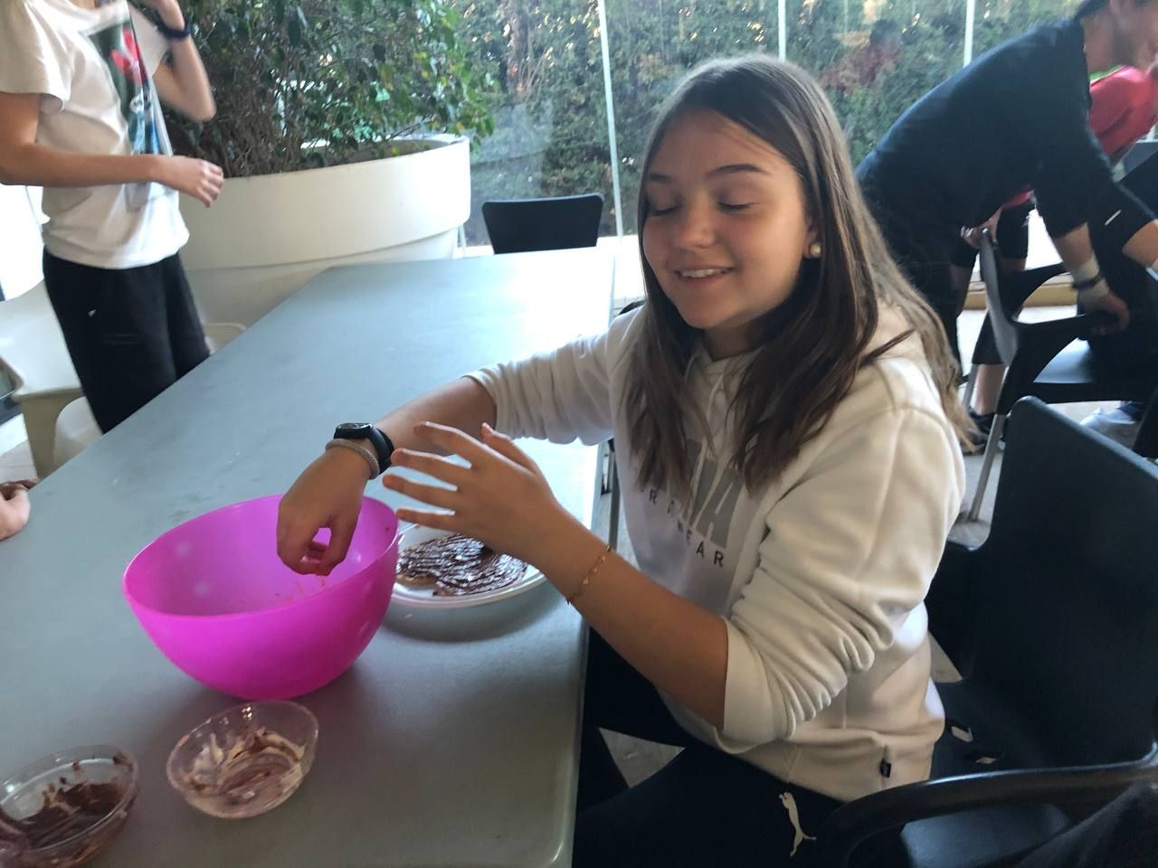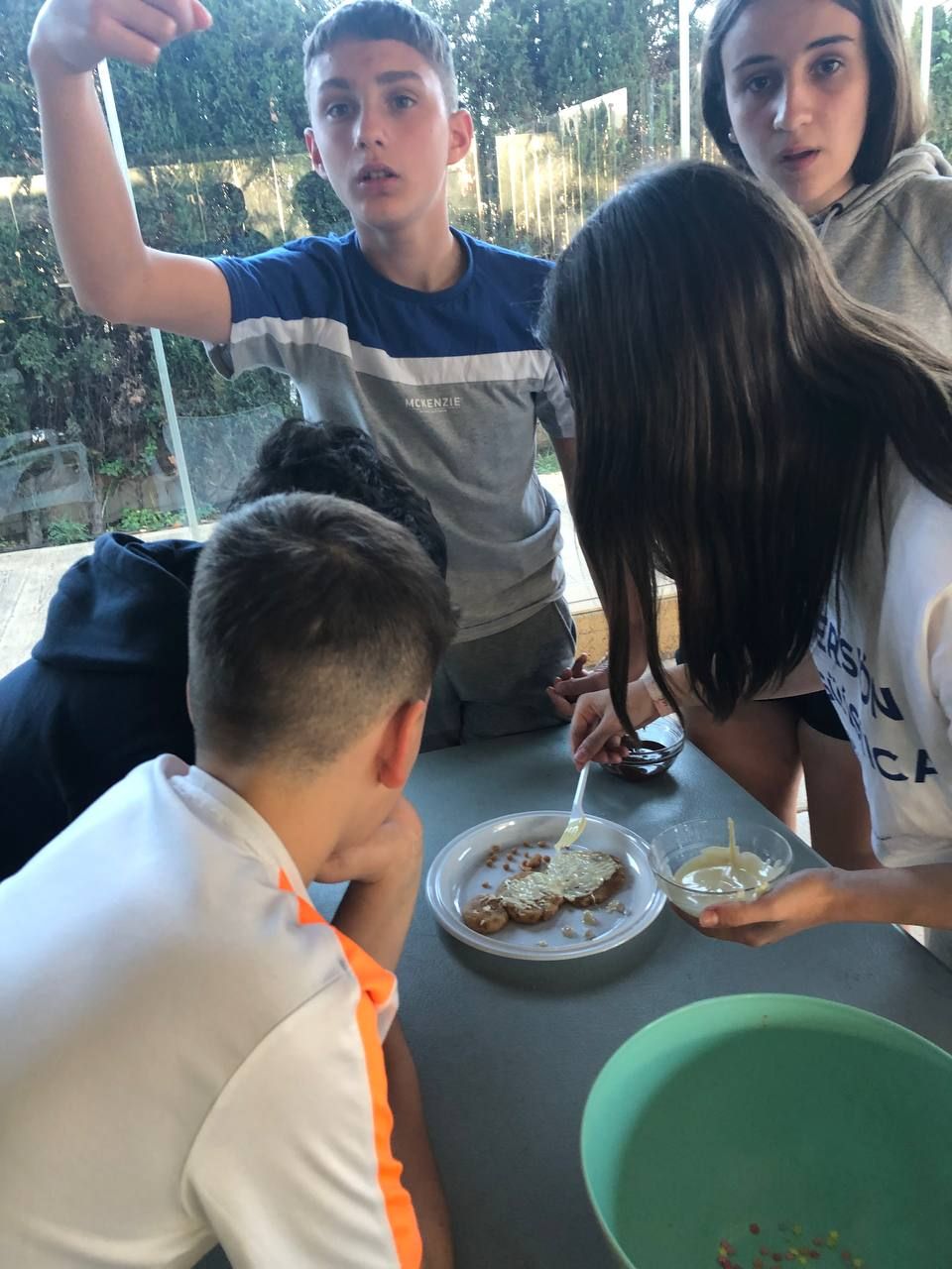 Después de la comida, los jóvenes han podido demostrar todas sus habilidades culinarias en el taller "cooking worshop". Partiendo de una receta base, los alumnos deben preparar y dar forma postres que ellos mismos podrán disfrutar al siguiente día. Lo han disfrutado mucho.