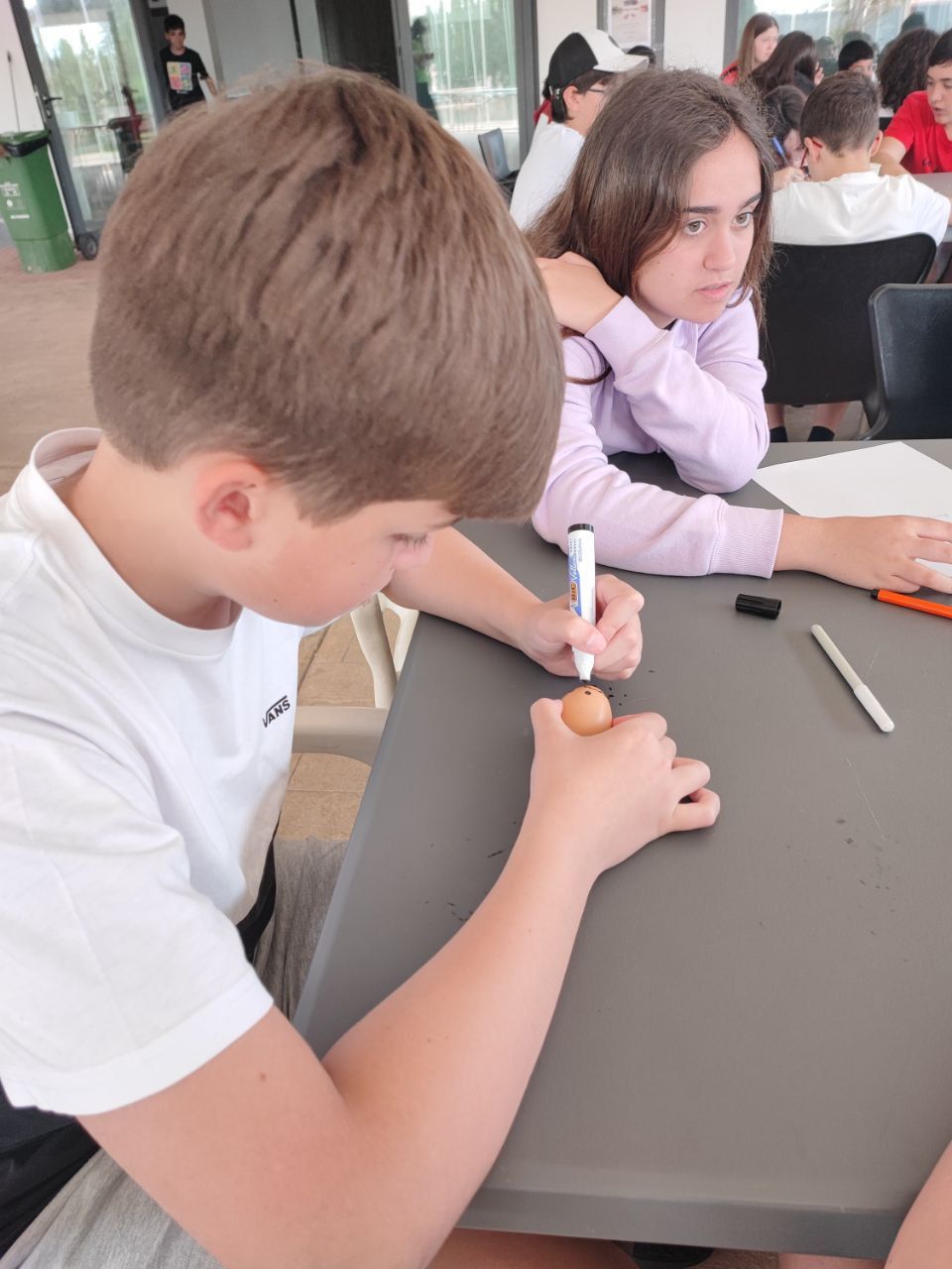 Al finalizar esta actividad y de tomar el "snack" de la mañana, los niños, por grupos de trabajo, tienen que crear un personaje a partir de un huevo en la actividad "super egg". Los alumnos reciben un huevo crudo, lo decoran y posteriormente crean un paracaídas. Los huevos son lanzados desde el tejado del hotel y solo los mejores diseños permiten que los huevos sobrevivan a la caída.