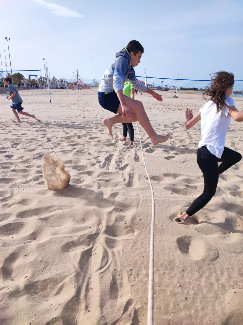 Después de la comida los niños han tenido un tiempo de descanso y posteriormente han podido ir a la playa en donde han realizado la actividad "Ninja Warrior Training". En este tiempo, los alumnos han superado diferentes desafíos propuestos por los profesores de la inmersión quienes durante esta dinámica actúan como "senseis" de los niños.