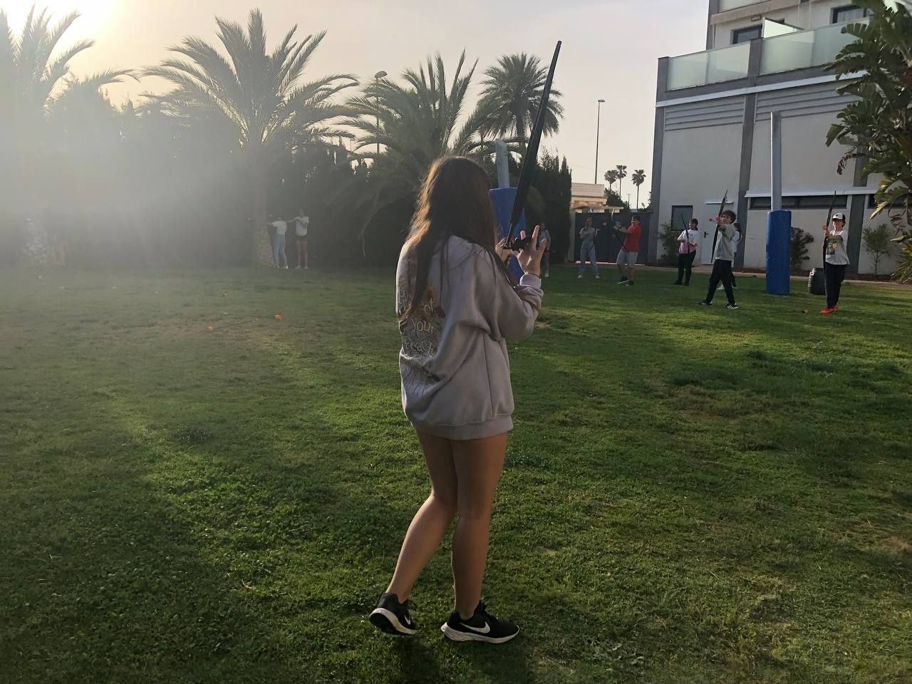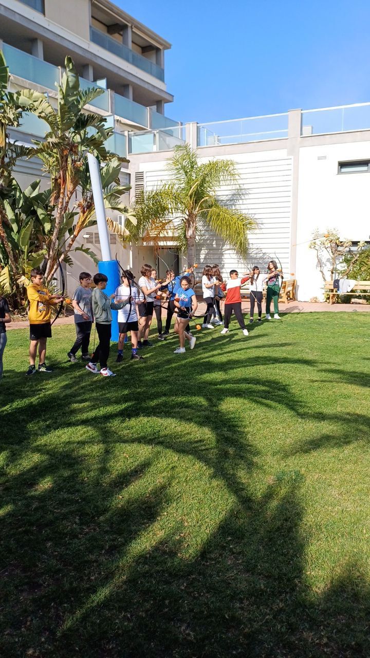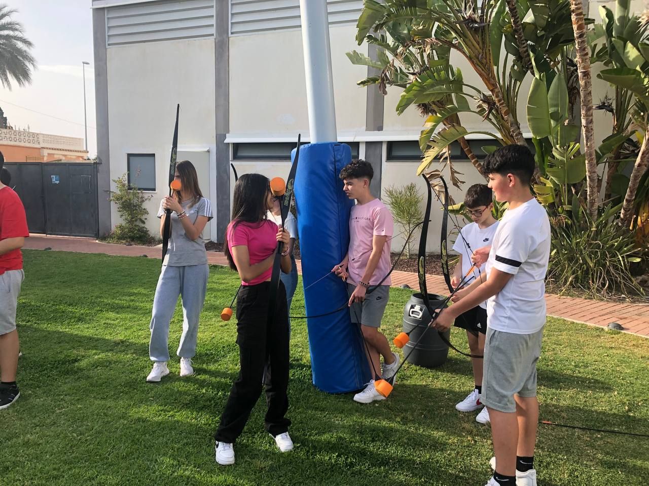 Después de la comida, los alumnos han salido de las instalaciones del hotel divididos en dos grupos para realizar las actividades "archery" y "beach games", intercambiando actividades con respecto al día anterior. El clima ha estado fenomenal y lo han podido disfrutar mucho.
