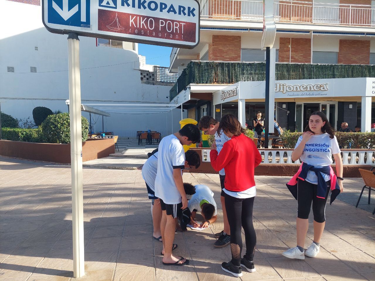 Posteriormente, los alumnos han ido a la playa, acompañados por los profesores de la inmersión a una búsqueda del tesoro o "Treasure Hunt". Los jóvenes deben encontrar pistas escondidas a lo largo del paseo marítimo de la playa en Oliva cercana al hotel y el primer grupo que las encuentre es el ganador.