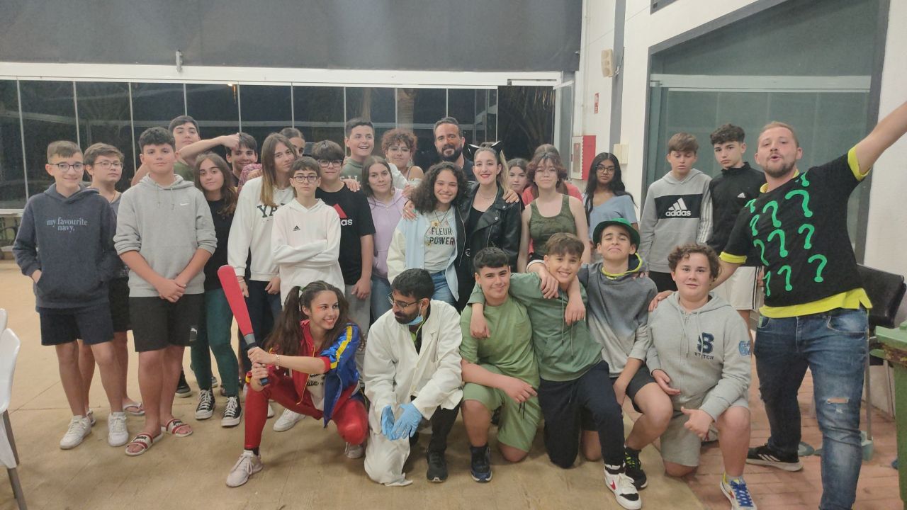 Después de la cena, los alumnos han desarrollado la actividad "Gotham Asylum". Los profesores de la inmersión disfrazados como personajes de "Gotham City" se distribuyen en diferentes zonas del hotel. Los jóvenes deben encontrarles y después de una conversación en inglés, descubrir que enfermedad mental tiene el personaje. Es toda una aventura para los alumnos y a la vez una oportunidad para practicar su comunicación oral en inglés.