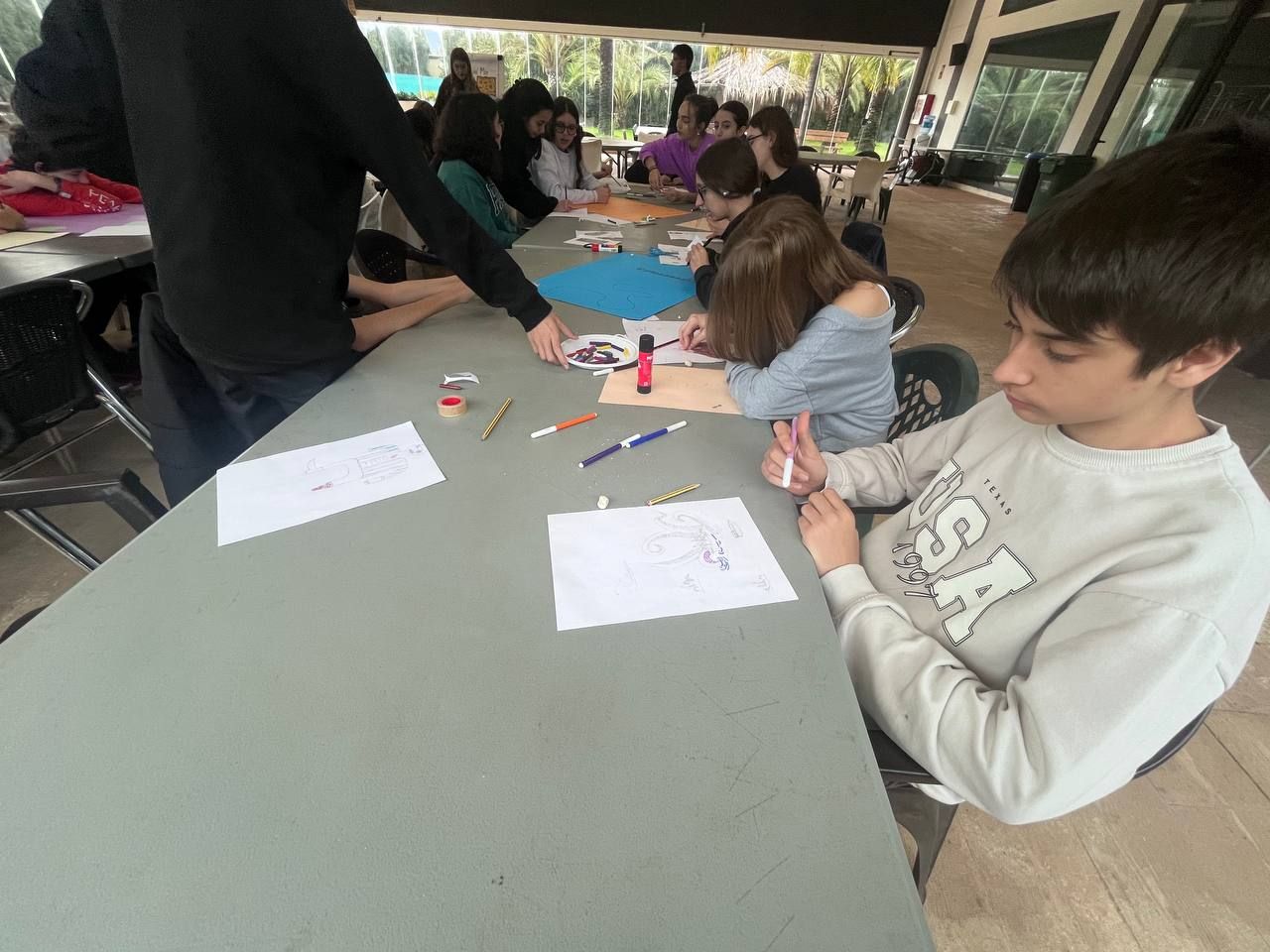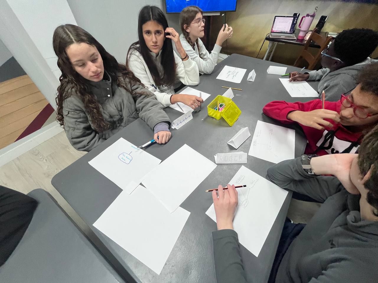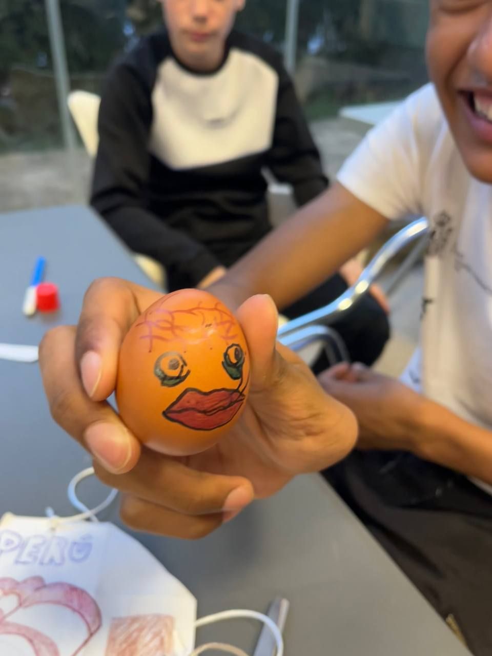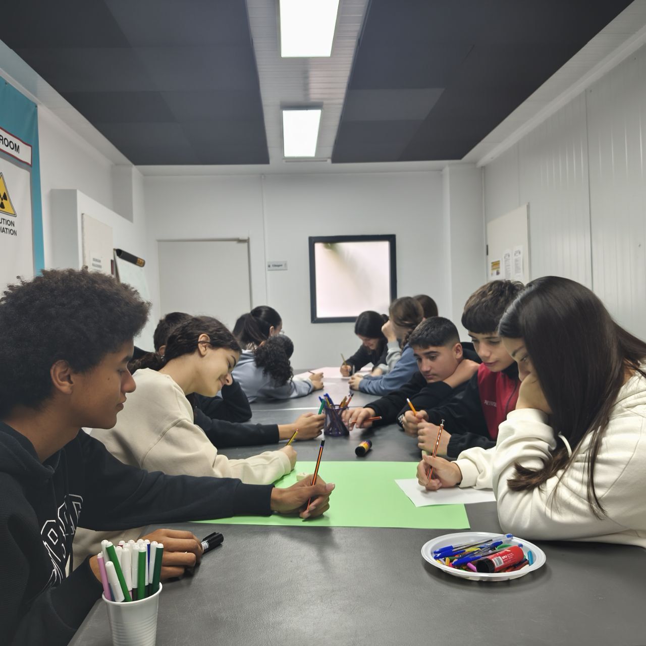 Posteriormente llevamos a cabo la actividad "Eggforce". En esta dinámica, los estudiantes debían crear un personaje, el "súper huevo", y contar su historia. Posteriormente, cada grupo diseñó un paracaídas para proteger a su personaje. La creatividad y el trabajo en equipo son fundamentales para que el huevo pueda sobrevivir al lanzamiento del mismo desde el tejado.