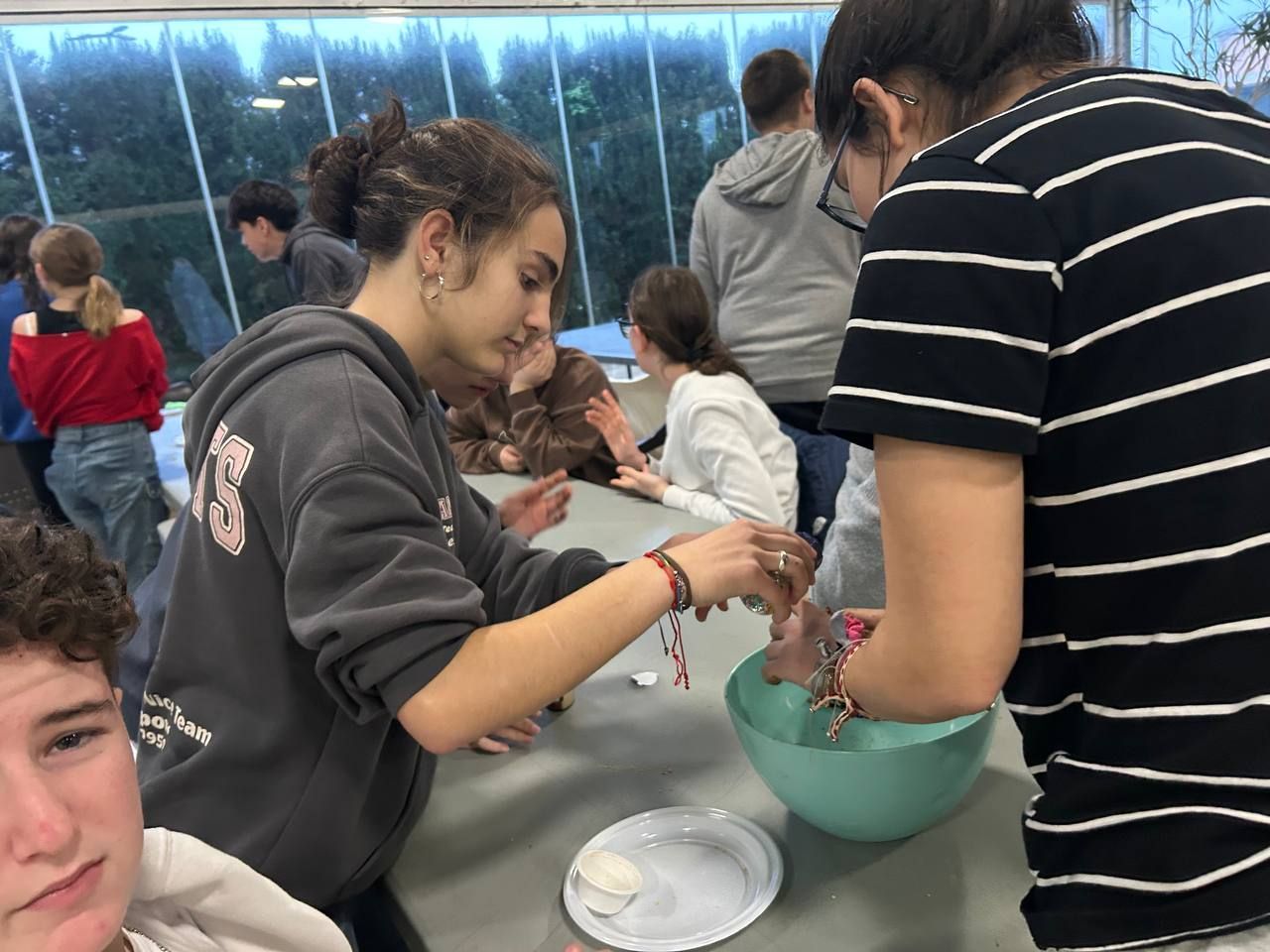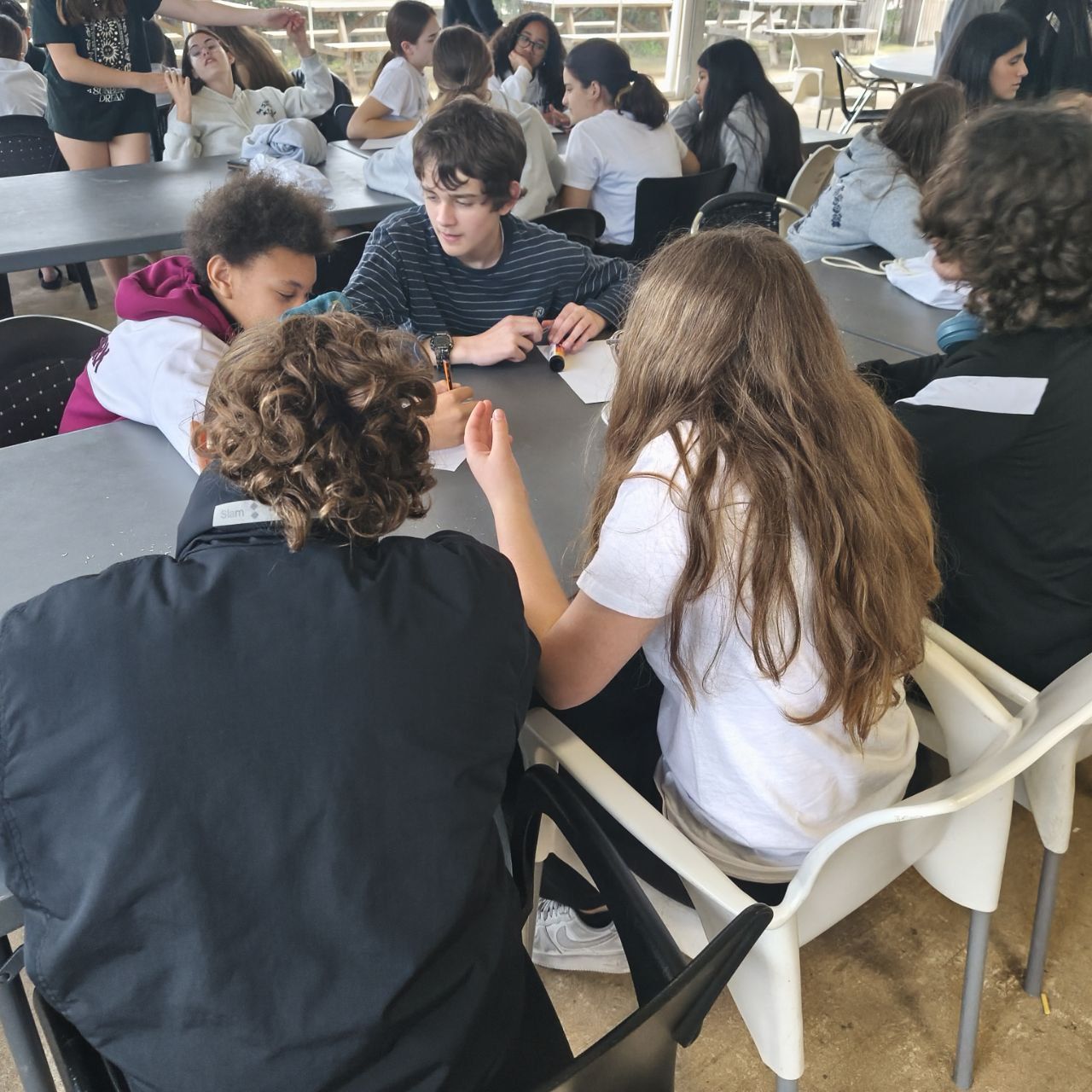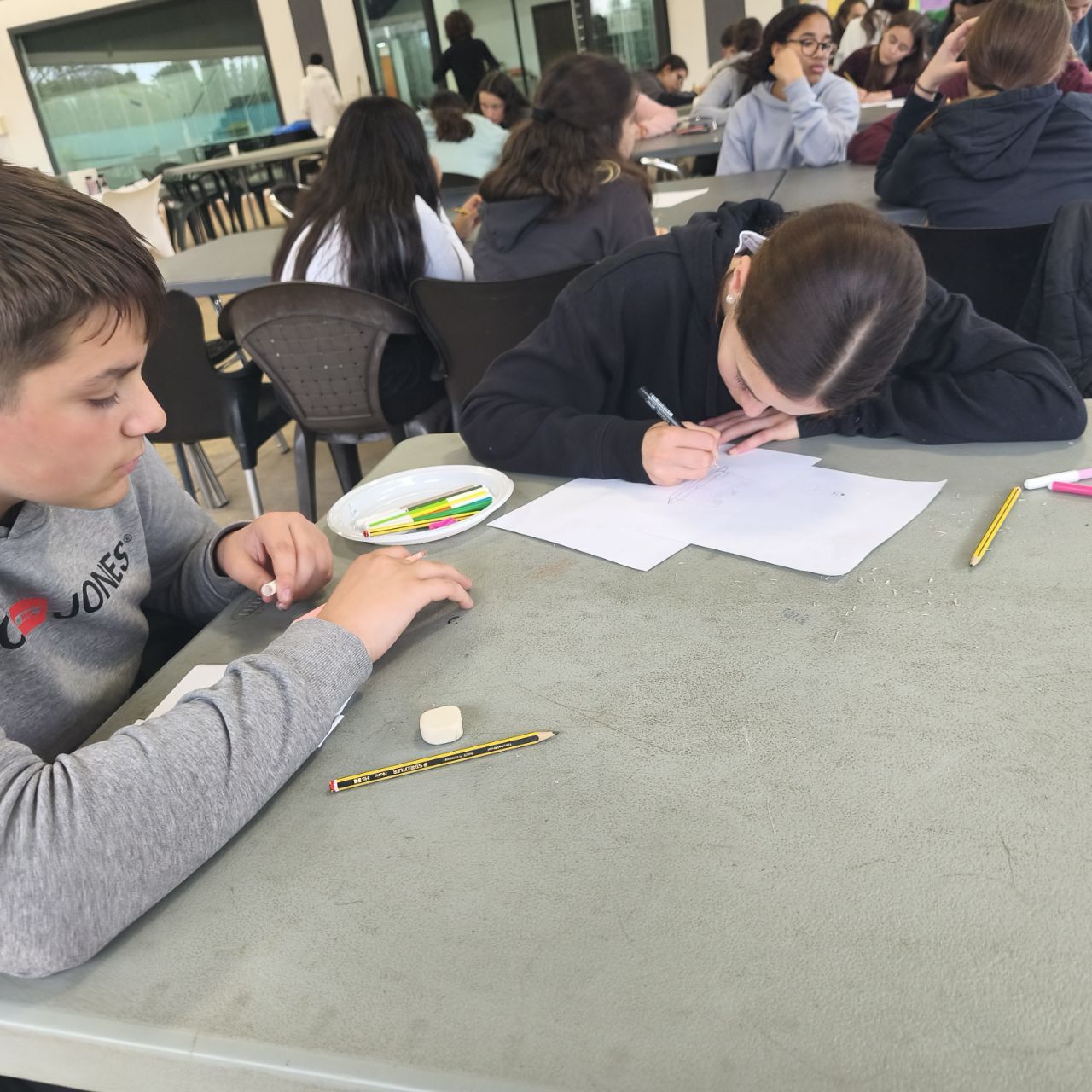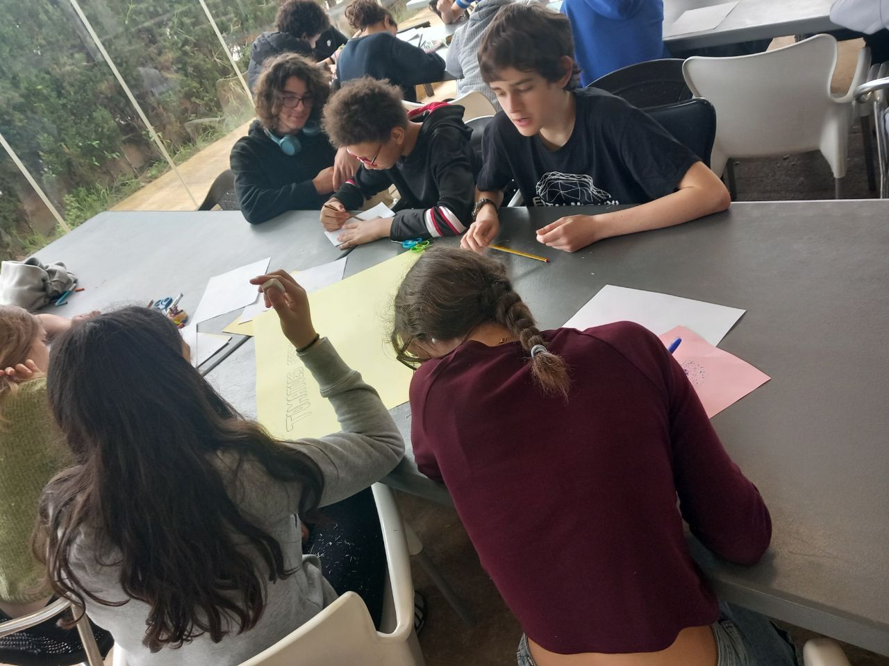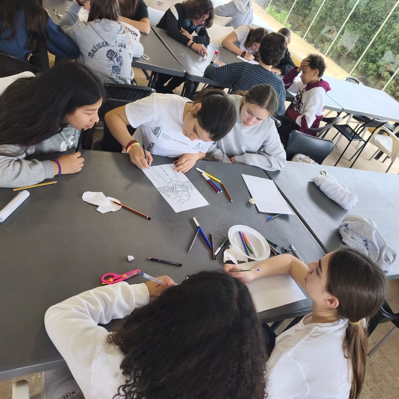 Posteriormente llevamos a cabo la actividad "Eggforce". En esta dinámica, los estudiantes debían crear un personaje, el "súper huevo", y contar su historia. Posteriormente, cada grupo diseñó un paracaídas para proteger a su personaje. La creatividad y el trabajo en equipo son fundamentales para que el huevo pueda sobrevivir al lanzamiento del mismo desde el tejado.