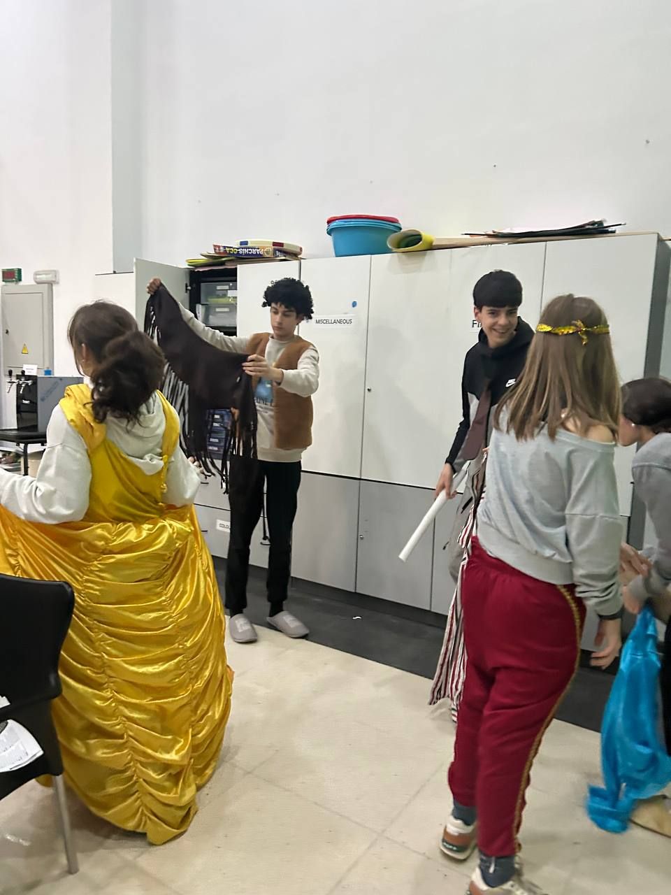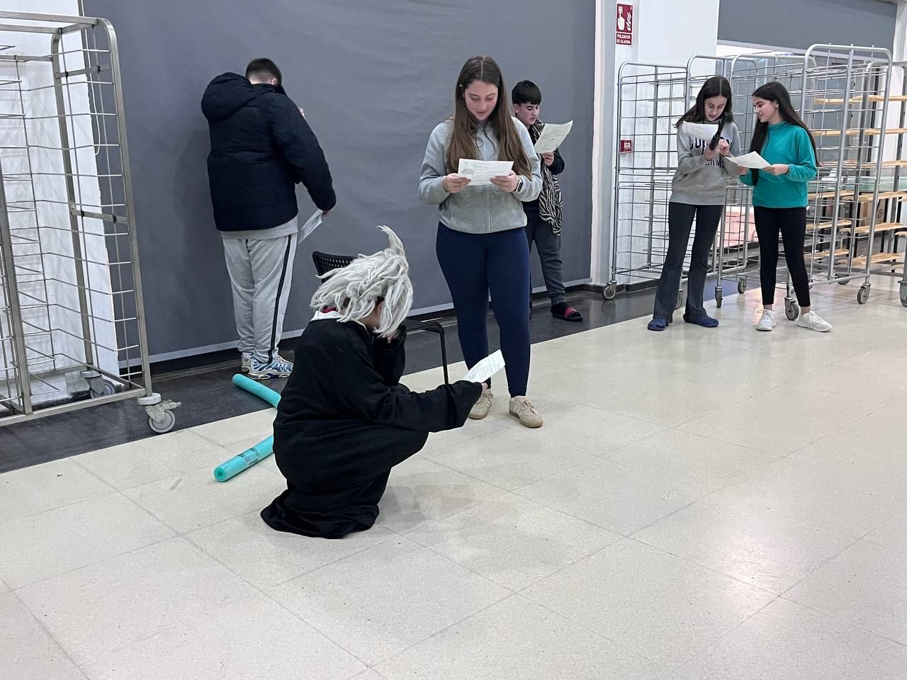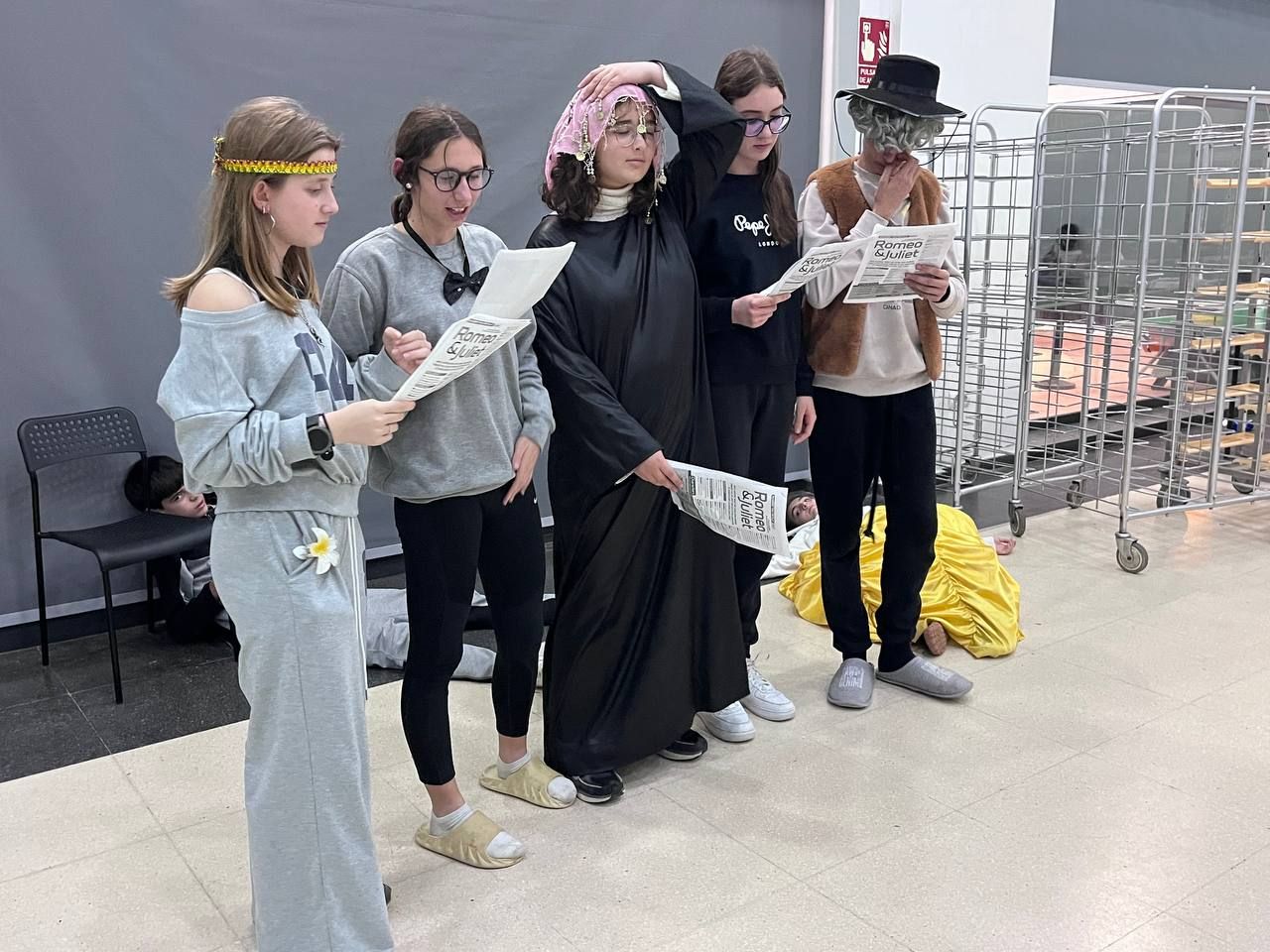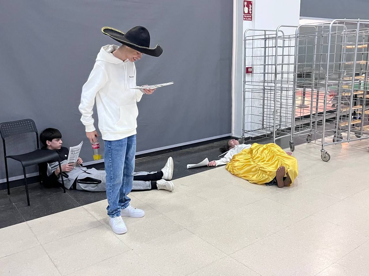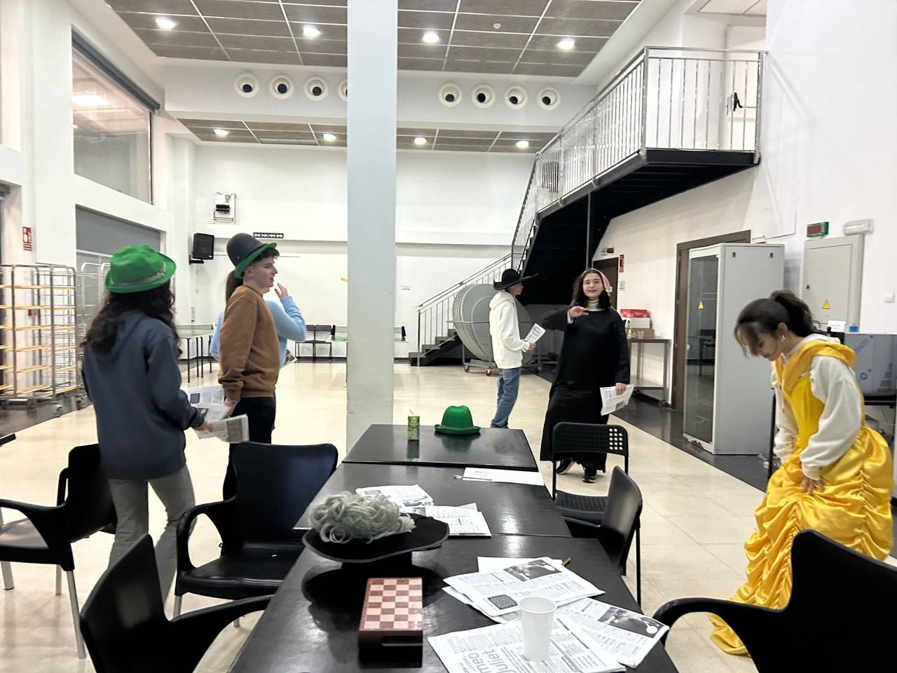 Tras la comida, los estudiantes pudieron practicar su inglés mientras desplegaban su talento actoral en el taller de "Theatre", donde interpretaron escenas de obras clásicas en inglés. Los alumnos se disfrazaron y se divirtieron al expresarse a través de los guiones propuestos. Esta experiencia, además de ser educativa, resultó muy divertida, permitiéndoles aprender de forma lúdica, mejorar su dominio del idioma y ganar confianza en el escenario.