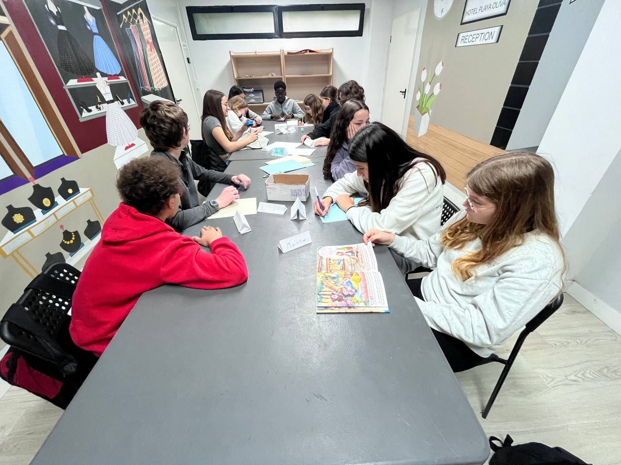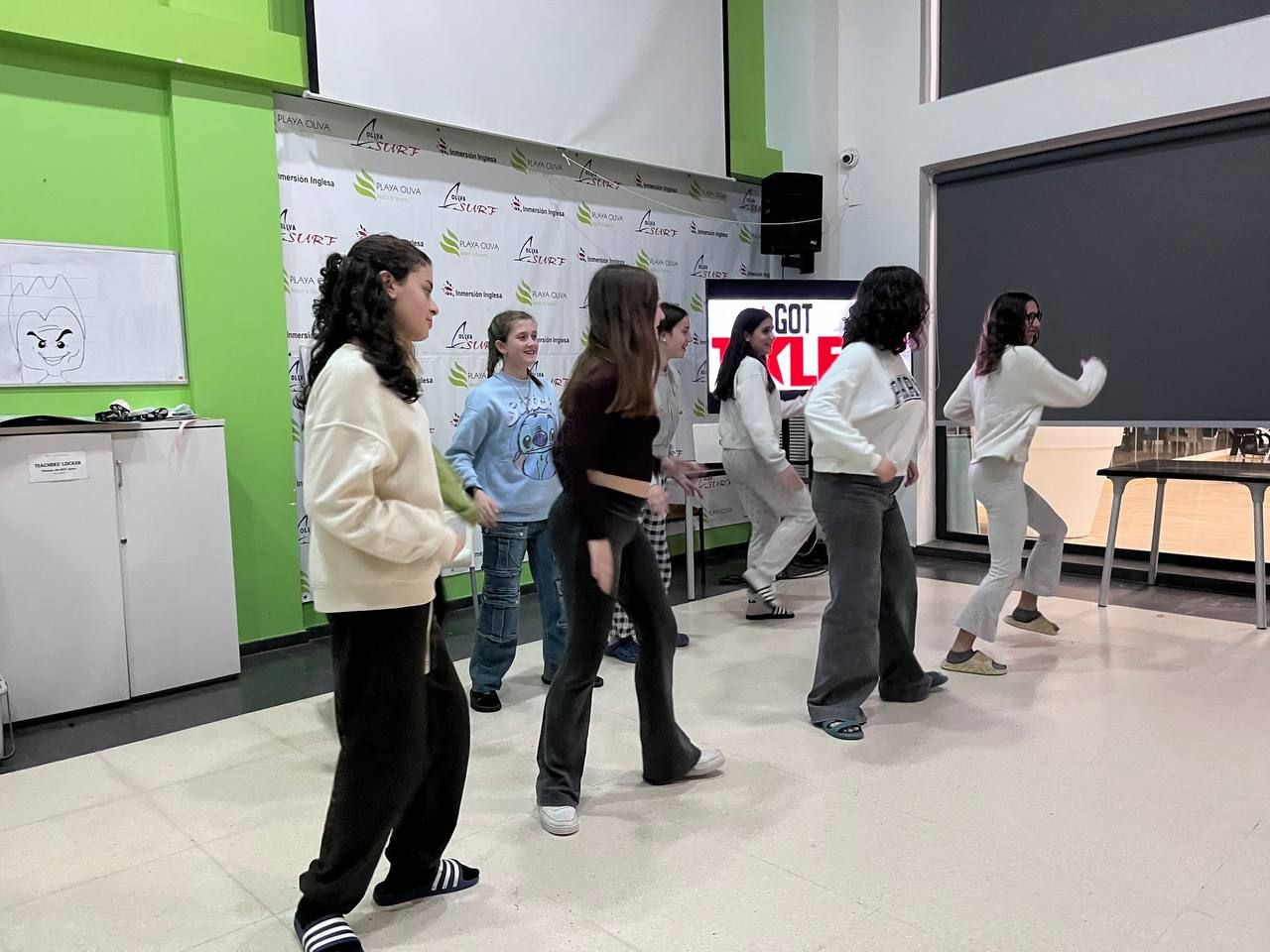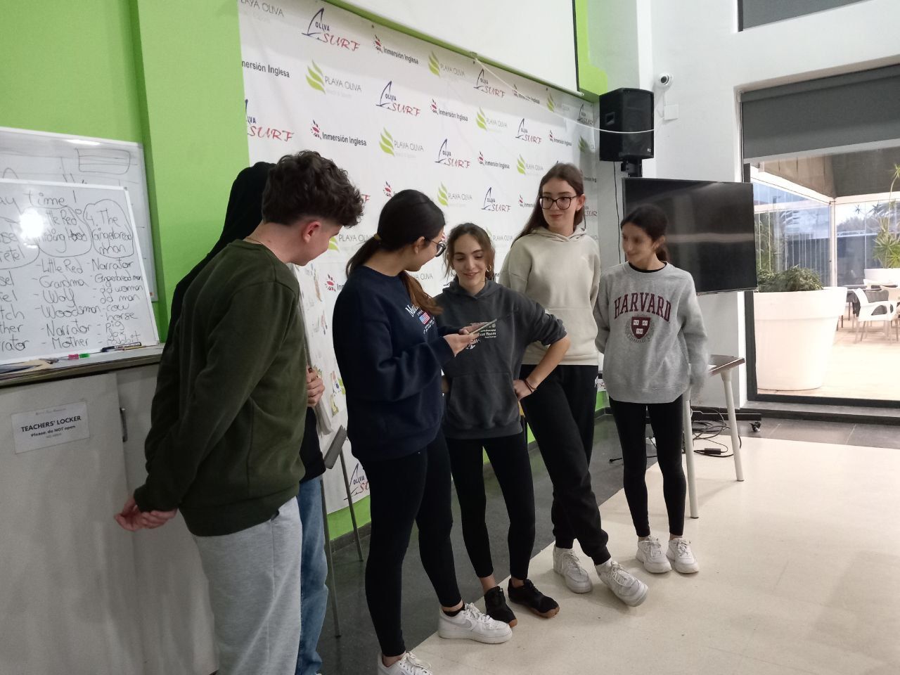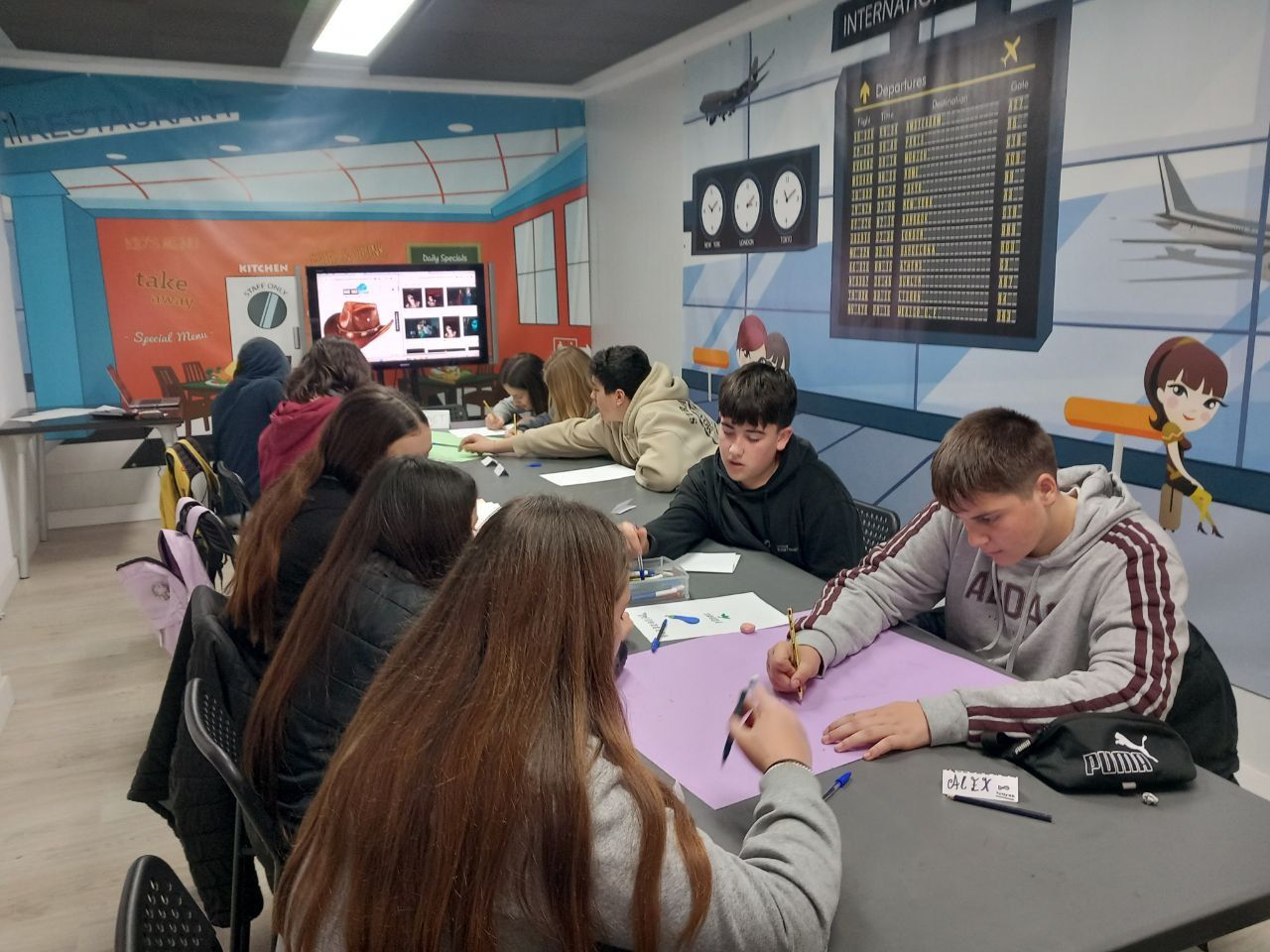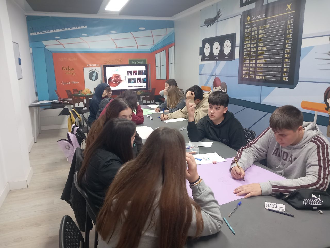 Tras la comida, los estudiantes pudieron practicar su inglés mientras desplegaban su talento actoral en el taller de "Theatre", donde interpretaron escenas de obras clásicas en inglés. Los alumnos se disfrazaron y se divirtieron al expresarse a través de los guiones propuestos. Esta experiencia, además de ser educativa, resultó muy divertida, permitiéndoles aprender de forma lúdica, mejorar su dominio del idioma y ganar confianza en el escenario.