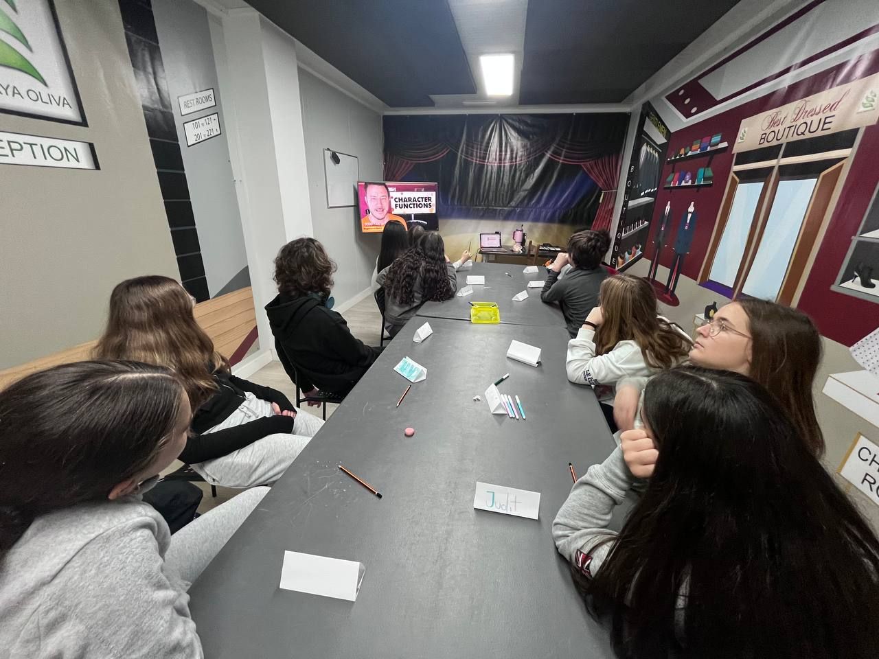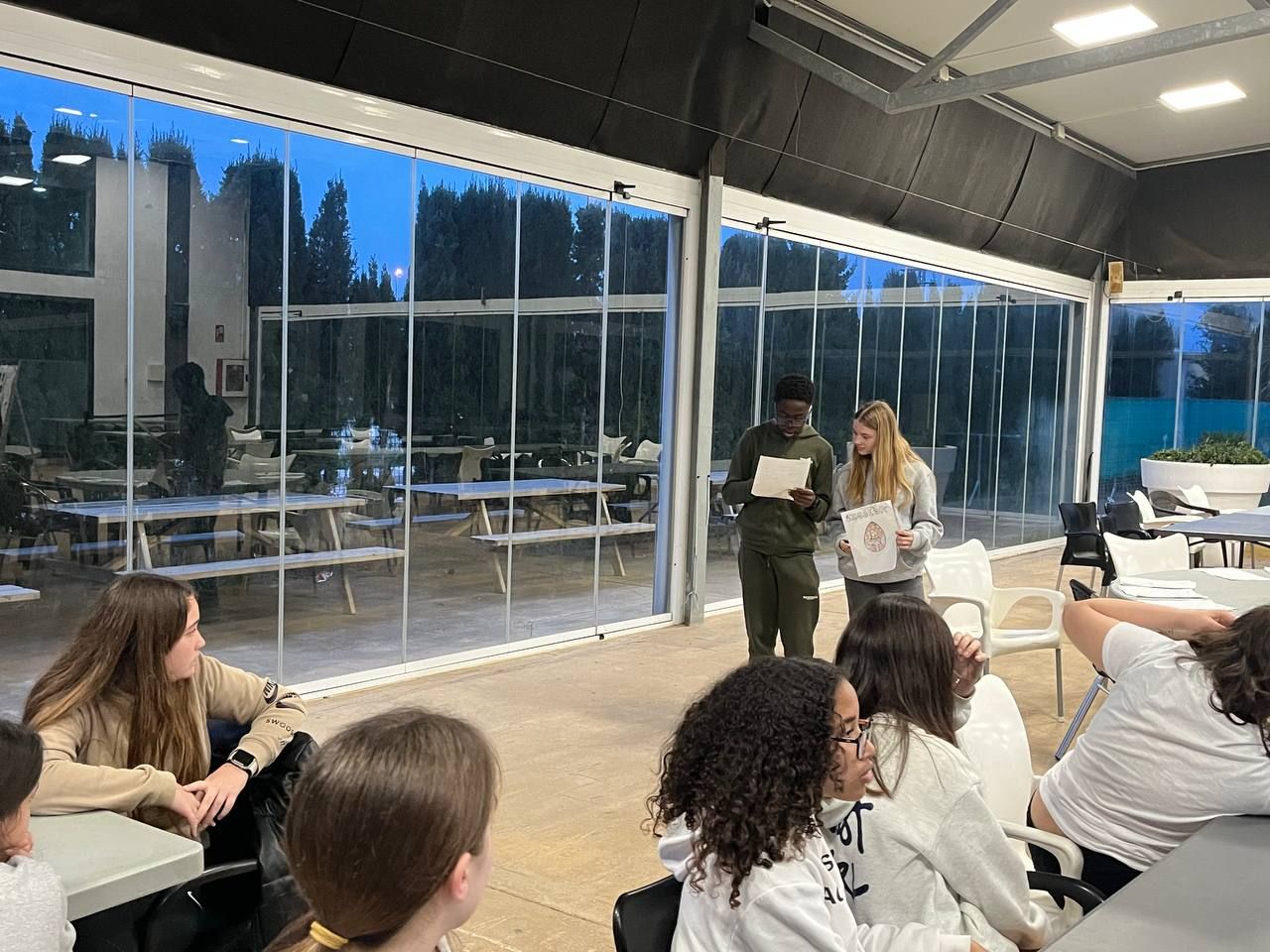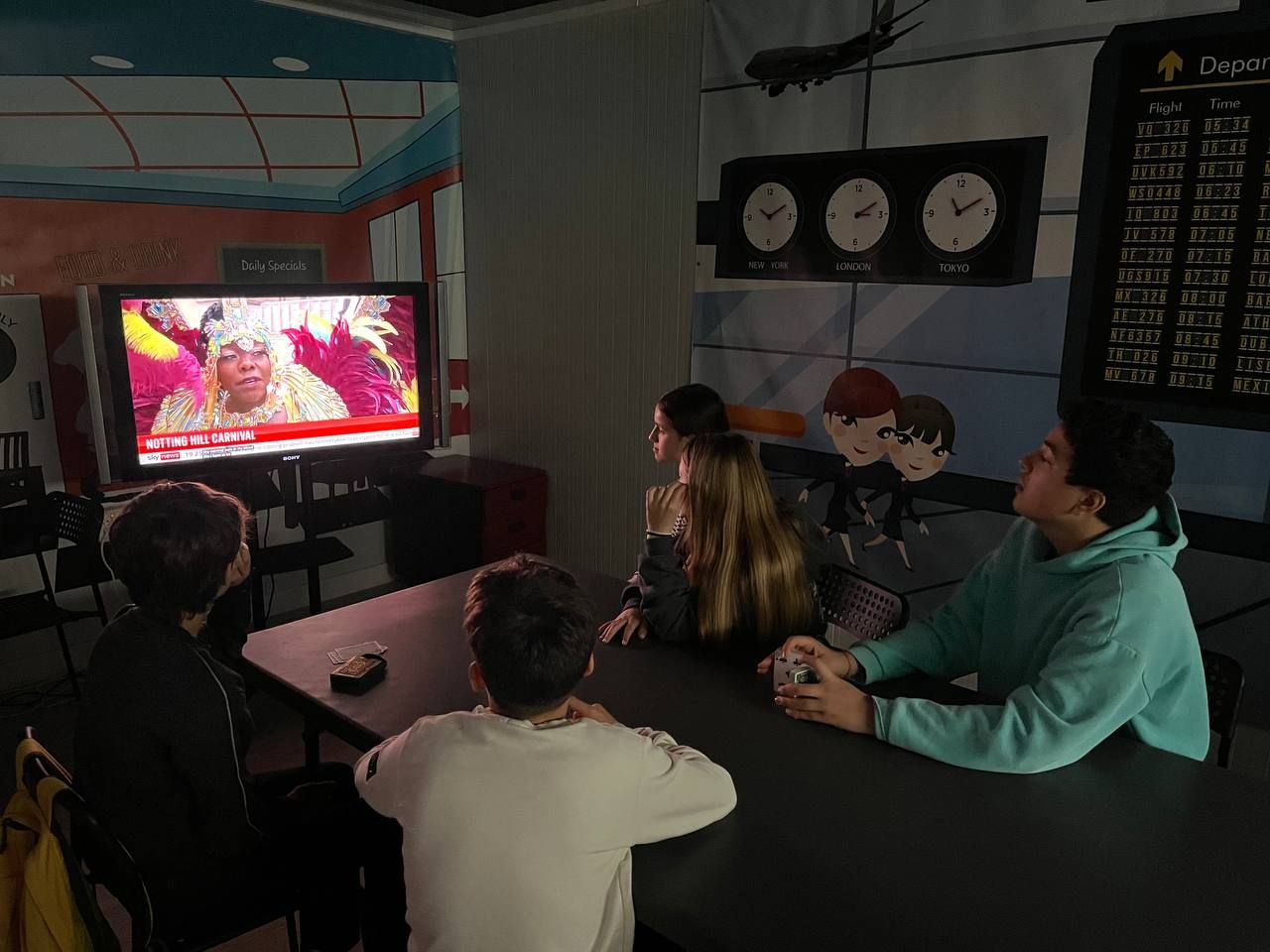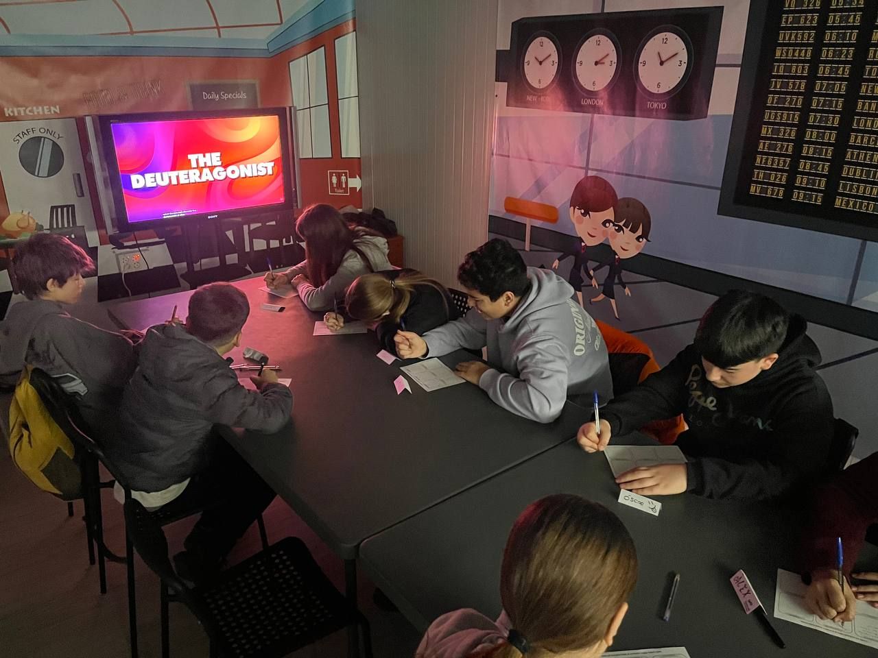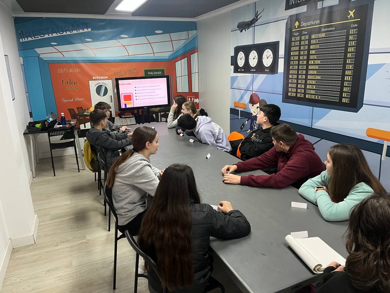 Tras la comida, los estudiantes pudieron practicar su inglés mientras desplegaban su talento actoral en el taller de "Theatre", donde interpretaron escenas de obras clásicas en inglés. Los alumnos se disfrazaron y se divirtieron al expresarse a través de los guiones propuestos. Esta experiencia, además de ser educativa, resultó muy divertida, permitiéndoles aprender de forma lúdica, mejorar su dominio del idioma y ganar confianza en el escenario.