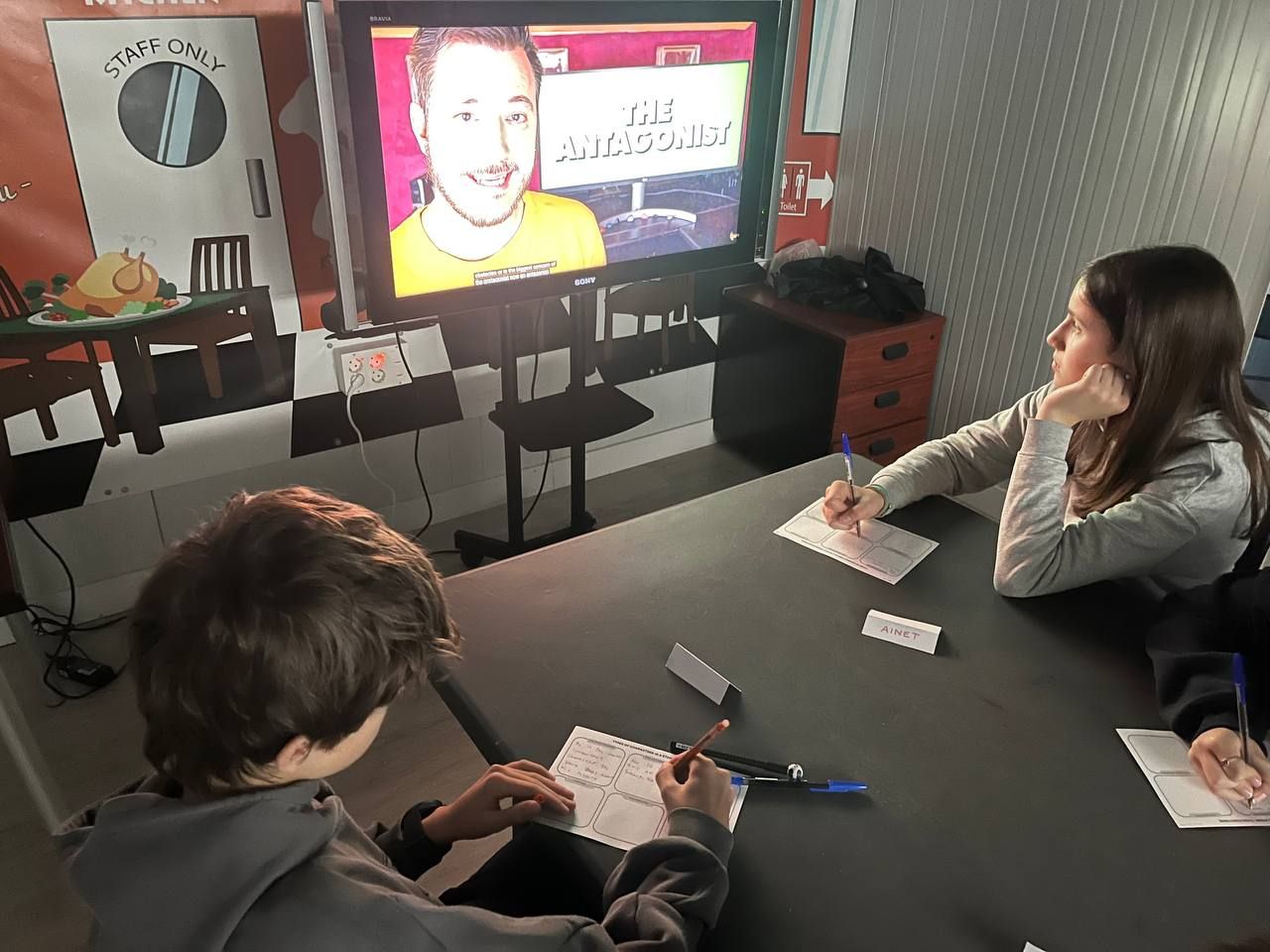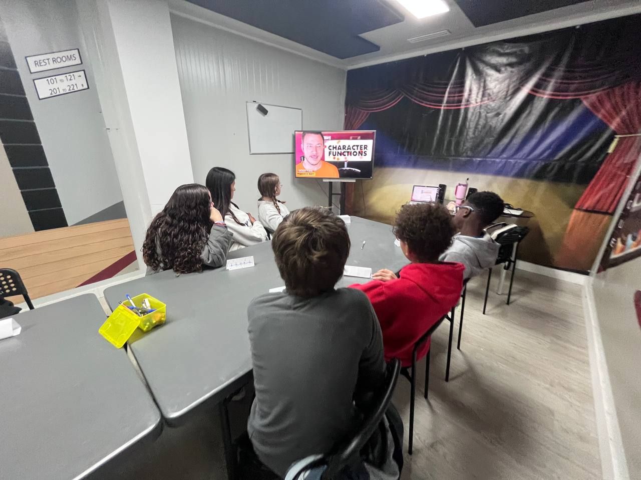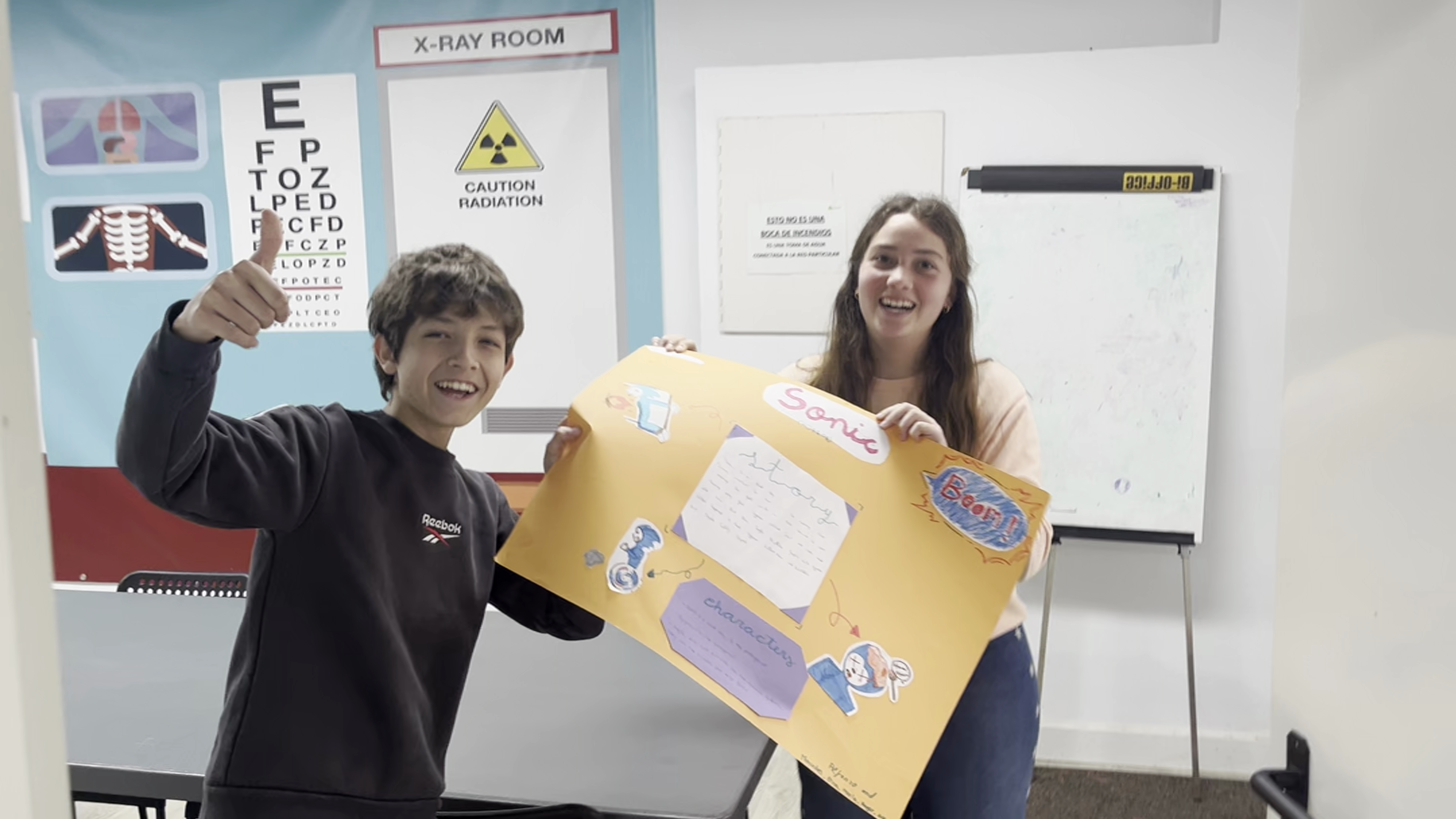Al comenzar el día, los estudiantes exploraron el concepto de "remediation", que consiste en convertir una historia de un formato a otro, como adaptar un libro a una obra de teatro, película o incluso un videojuego. Durante la actividad "Genre Swap Challenge", los alumnos aplicaron este concepto cambiando diferentes historias de formato, siempre en inglés y con la orientación de los profesores del programa de inmersión.