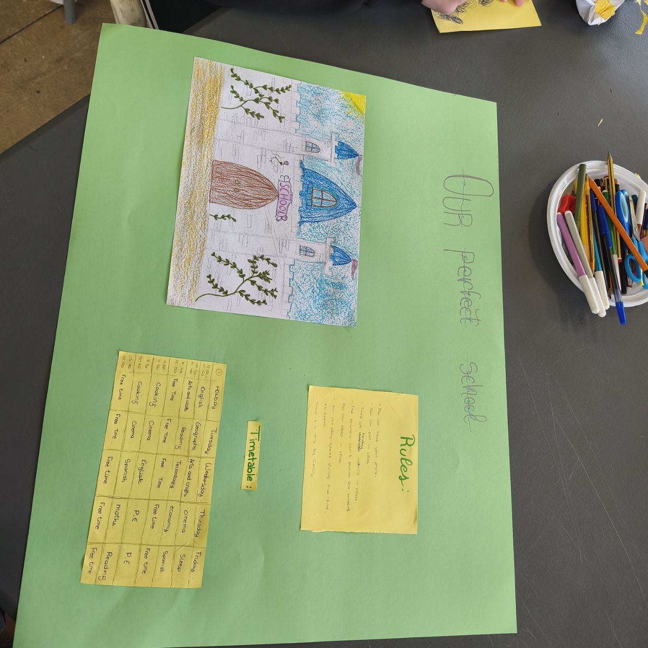 Posteriormente, los alumnos han realizado la actividad "Design your perfect school", en donde deben utilizar toda su imaginación trabajando en equipo, para diseñar el colegio ideal. Ha sido un tiempo de aprendizaje fantástico.