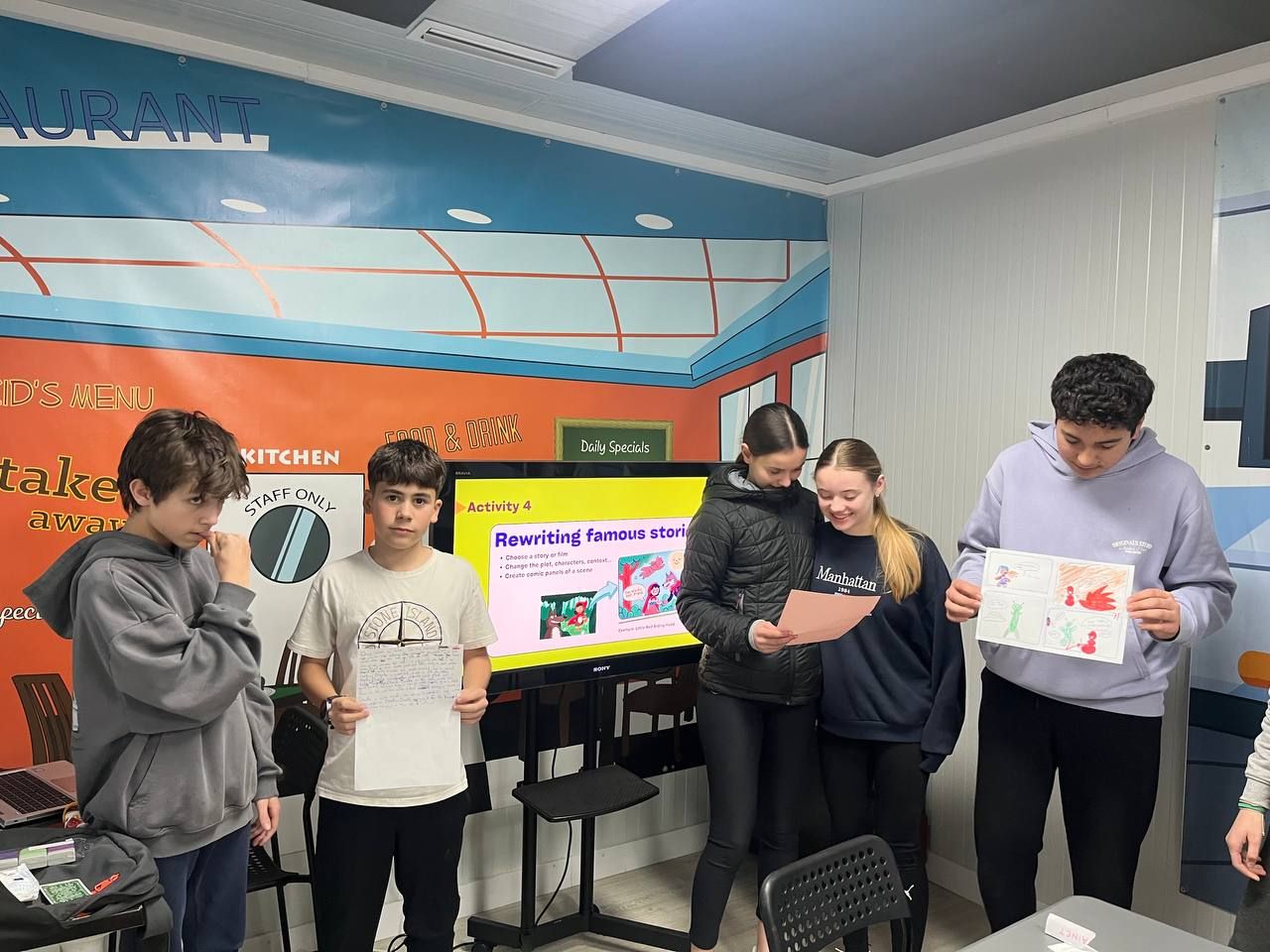 Durante la tarde ha realizado la actividad "Rewriting Famous Histories", en la cual, los alumnos deben replantear historias conocidas con nuevos personajes, locaciones o situaciones, complementando de manera práctica la actividad "Different Characters in Every Story" realizada durante la mañana.