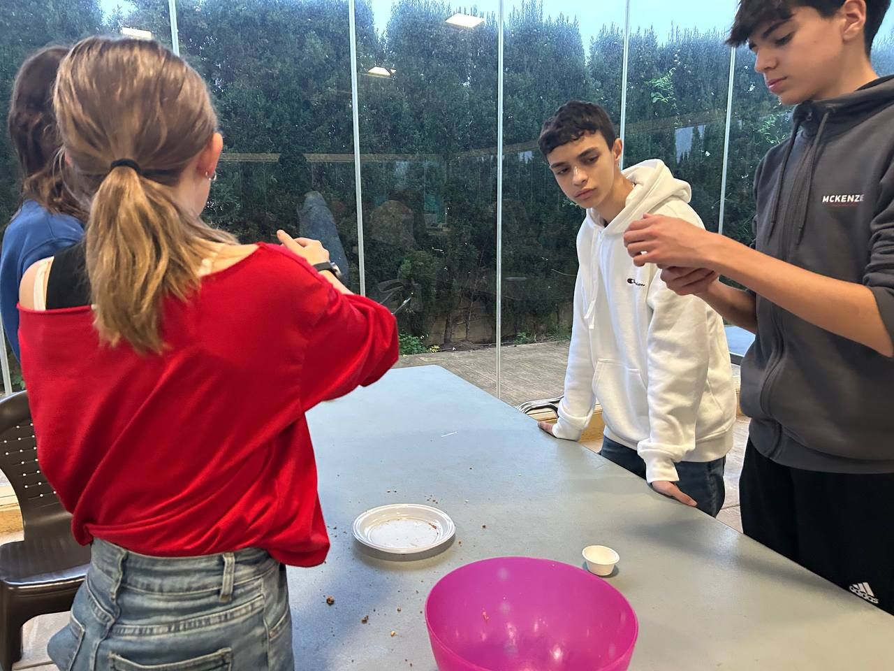 Más tarde, los alumnos tuvieron la oportunidad de exhibir sus habilidades culinarias en el taller de cocina "Cooking Workshop". Utilizando los mismos ingredientes, los alumnos, organizados en grupos, prepararon postres que ellos mismos disfrutarían a lo largo del día.