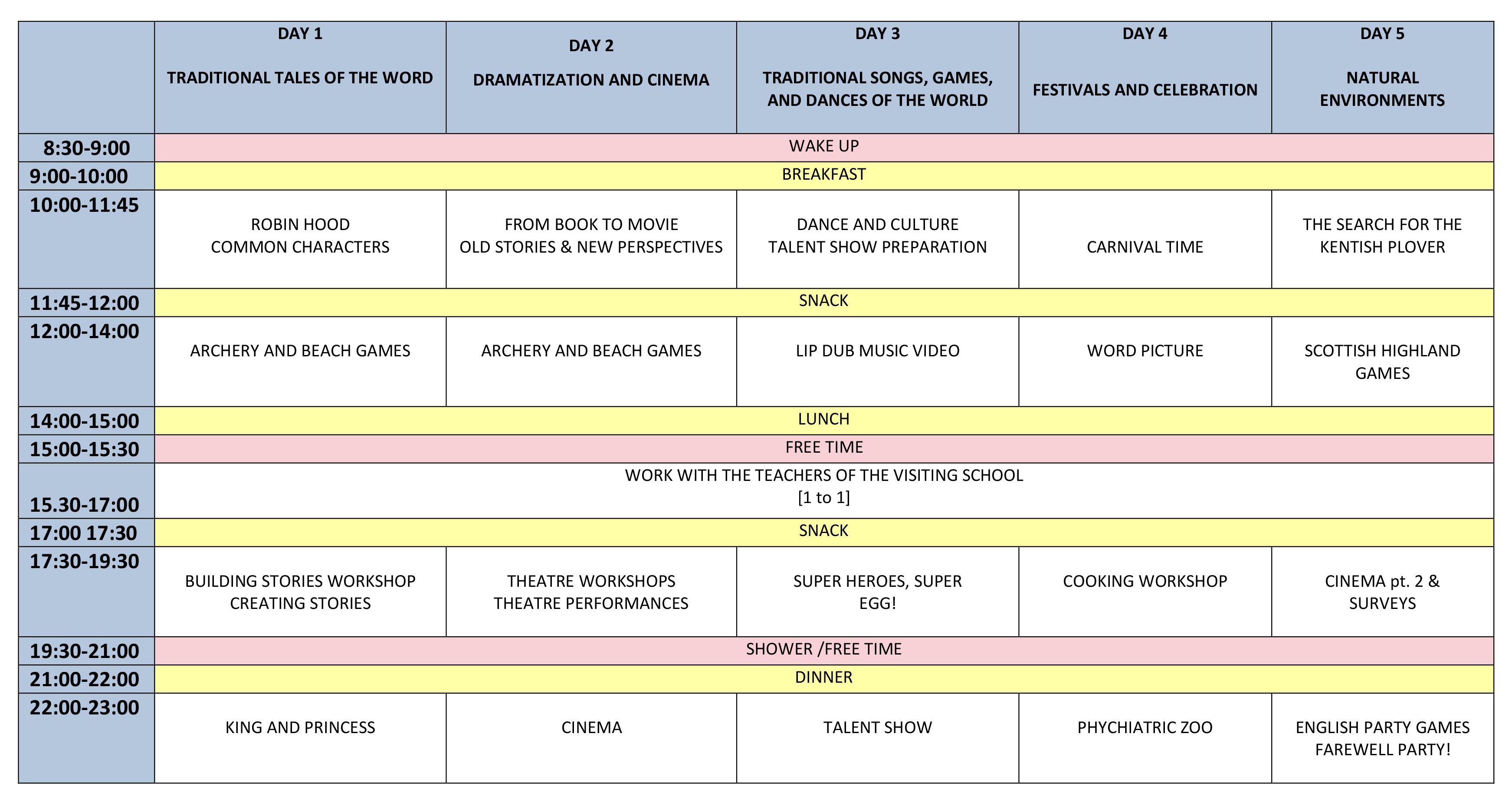 A continuación, presentamos el cronograma detallado de las actividades previstas para toda la semana, que establecerá la rutina diaria: