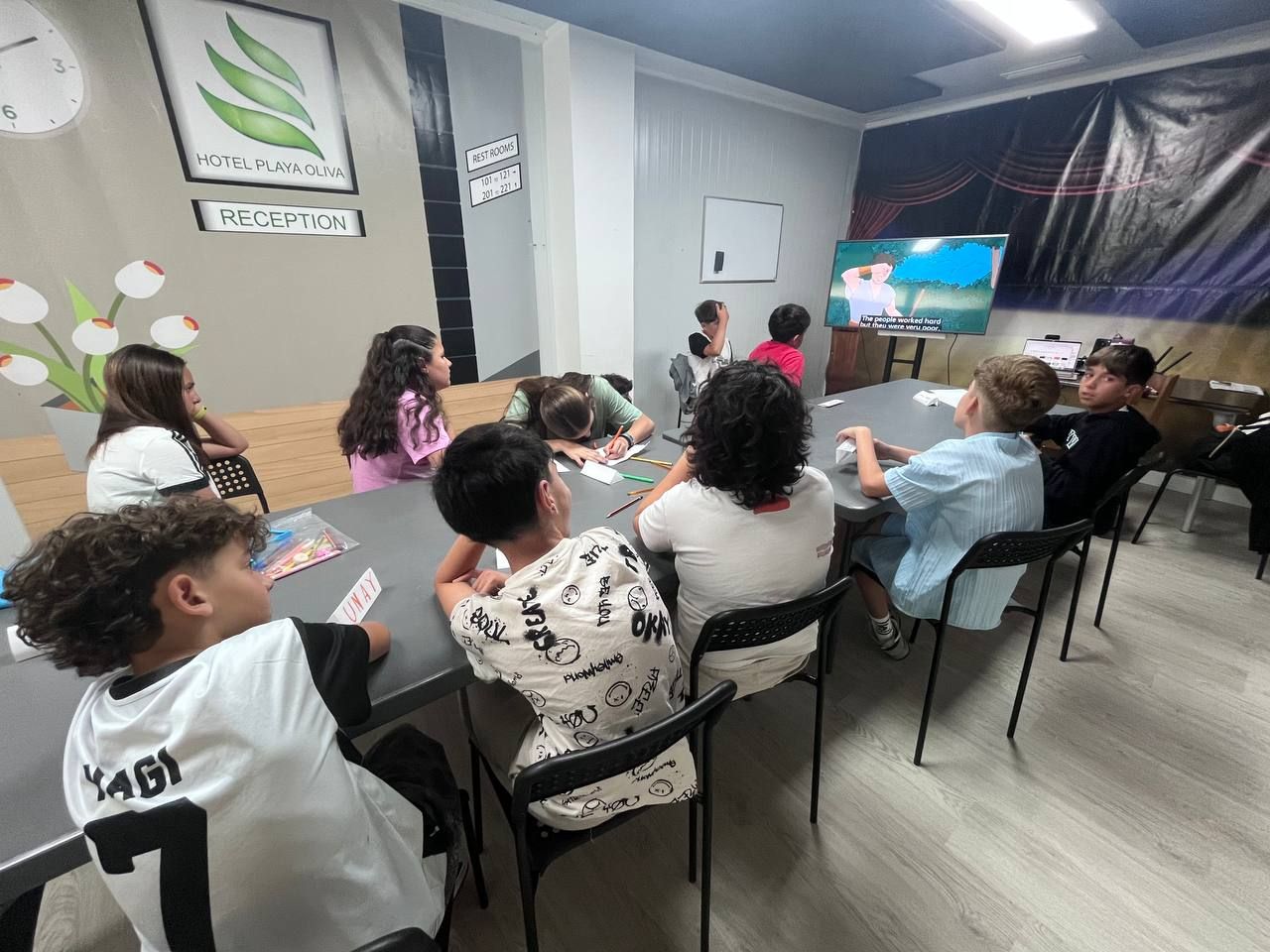 Esta actividad les permitió sumergirse en el idioma de manera divertida y relajada, mientras disfrutaban de una película seleccionada especialmente para ellos, antes de ir a descansar.