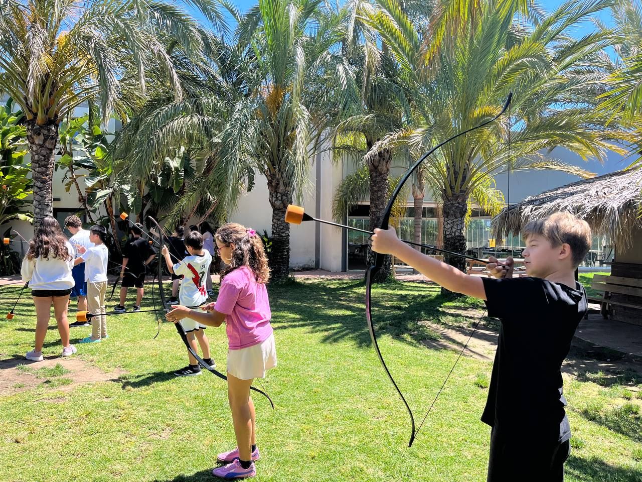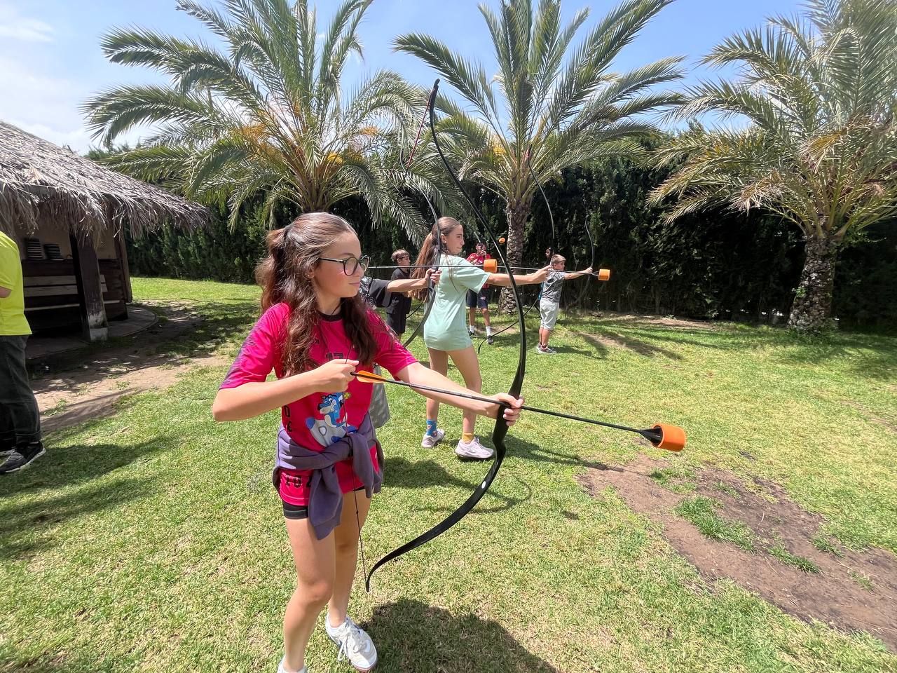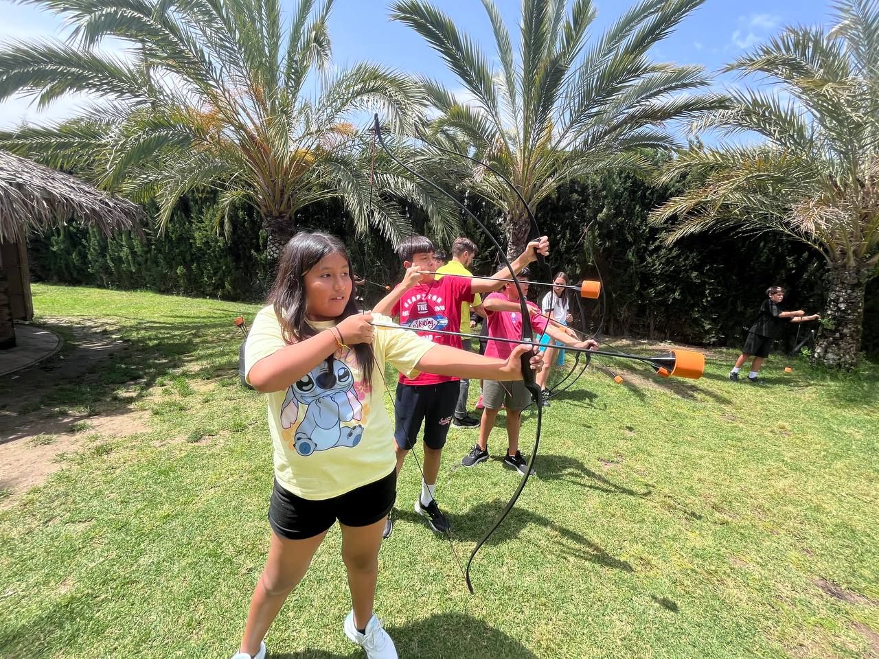 Posteriormente, los estudiantes pusieron a prueba su destreza en la actividad de "archery", utilizando flechas con punta de goma espuma para asegurar su seguridad.