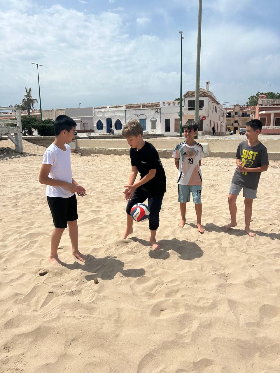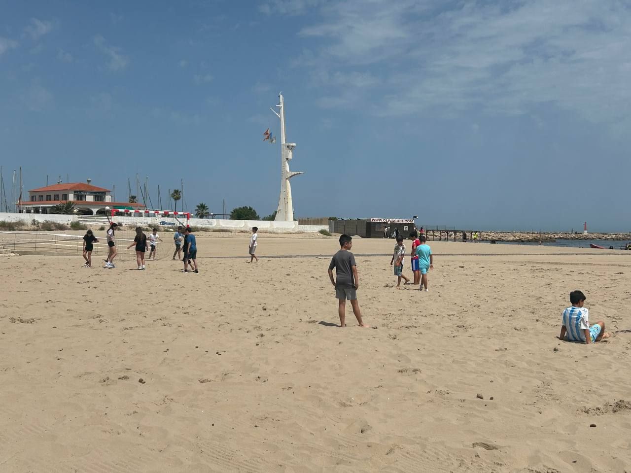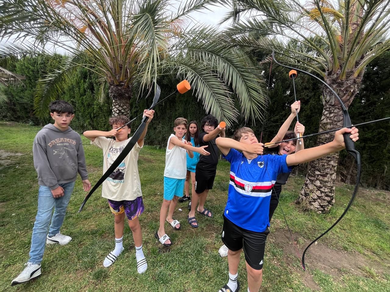 Se dividieron en dos grupos: mientras uno practicaba el tiro con arco, el otro disfrutaba de juegos y deportes en la playa, aprovechando un momento de ejercicio y diversión al aire libre.
