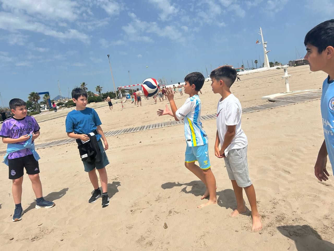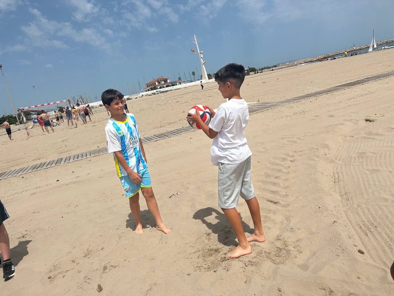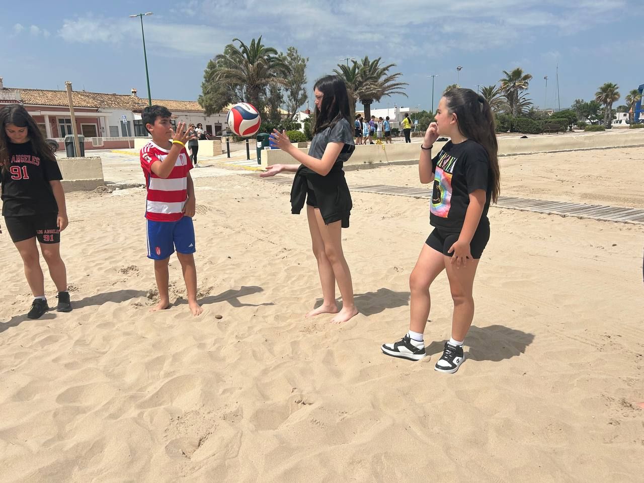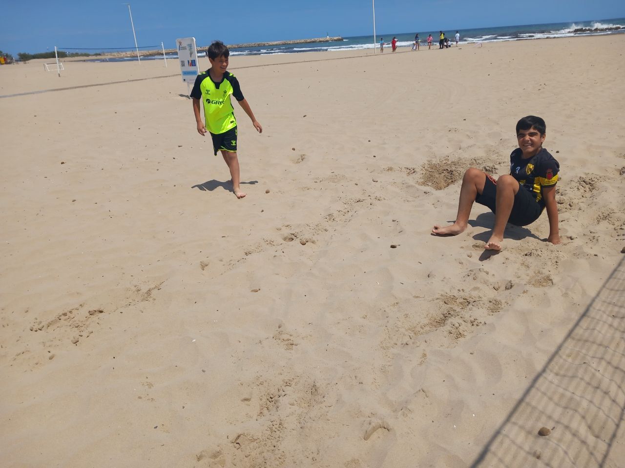 Se dividieron en dos grupos: mientras uno practicaba el tiro con arco, el otro disfrutaba de juegos y deportes en la playa, aprovechando un momento de ejercicio y diversión al aire libre.