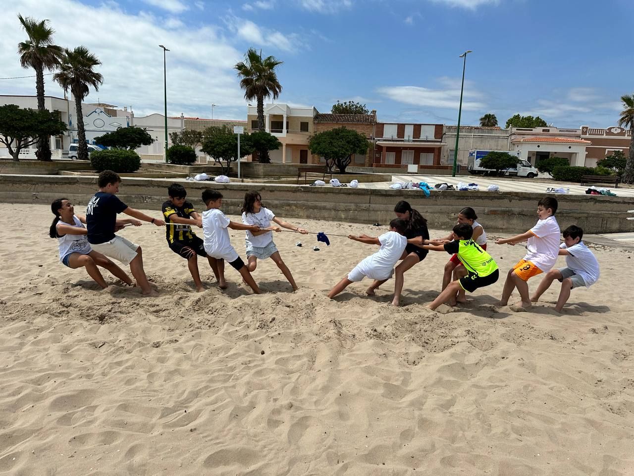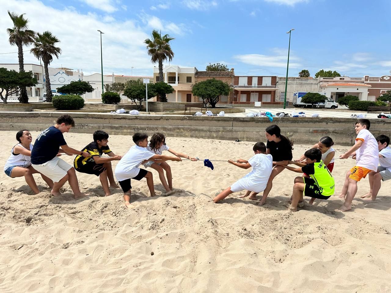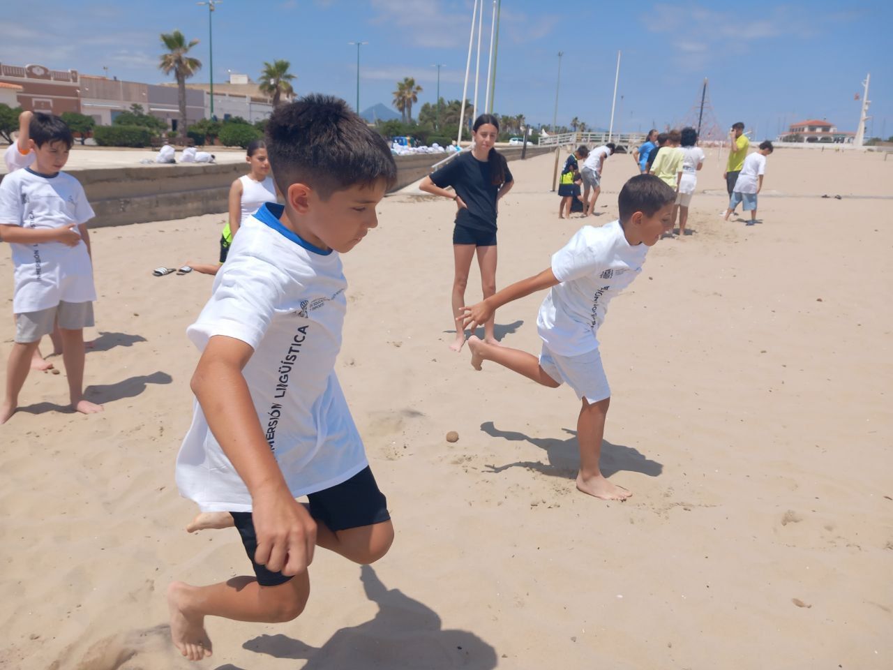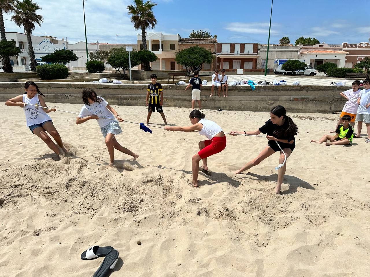 Después de la comida, los niños disfrutaron de un tiempo de descanso y luego se dirigieron a la playa para participar en la actividad "Scottish Highland Beach Games". Durante esta dinámica, los alumnos enfrentaron diversos desafíos propuestos por los profesores del programa de inmersión, inspirados en los tradicionales juegos escoceses.