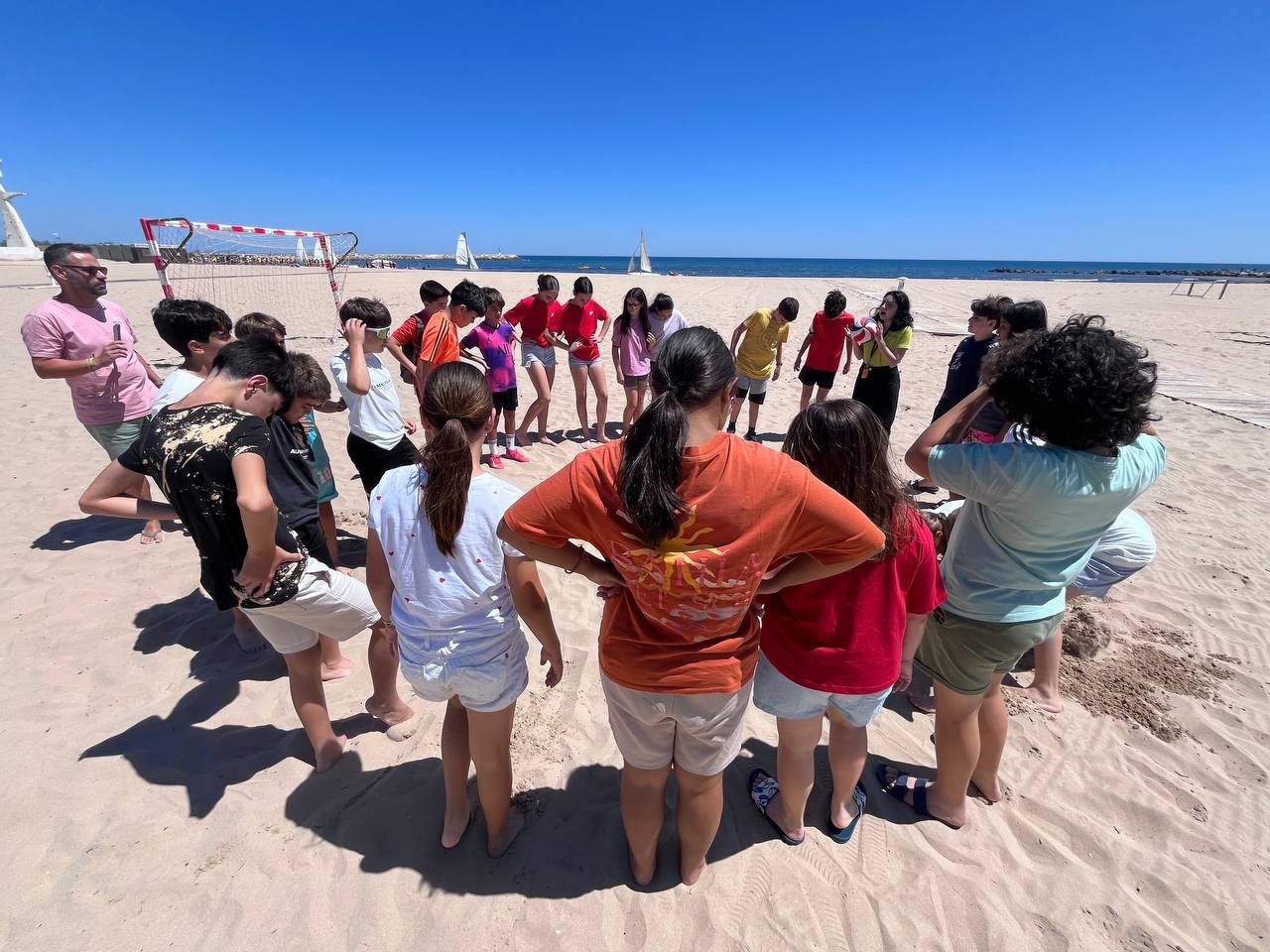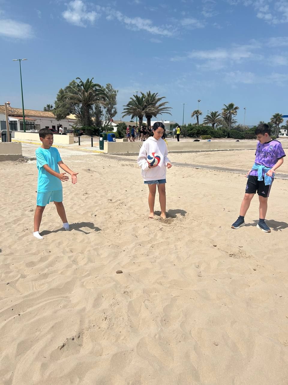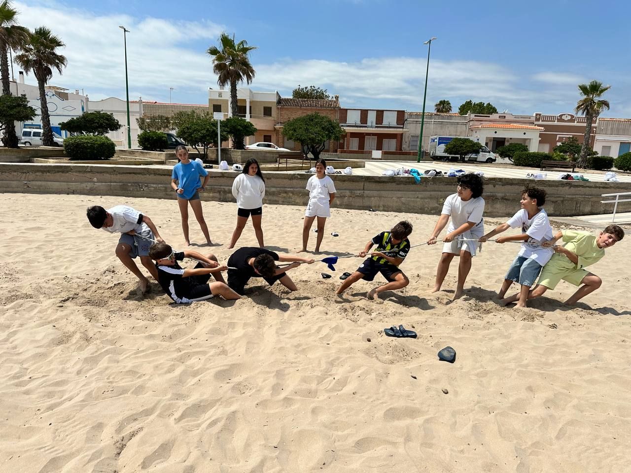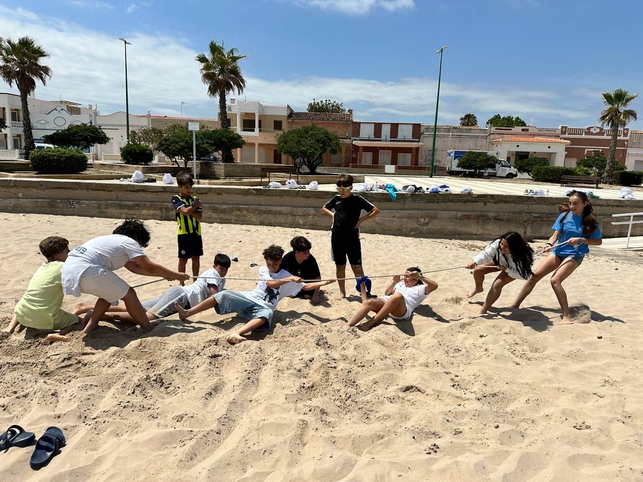 Después de la comida, los niños disfrutaron de un tiempo de descanso y luego se dirigieron a la playa para participar en la actividad "Scottish Highland Beach Games". Durante esta dinámica, los alumnos enfrentaron diversos desafíos propuestos por los profesores del programa de inmersión, inspirados en los tradicionales juegos escoceses.