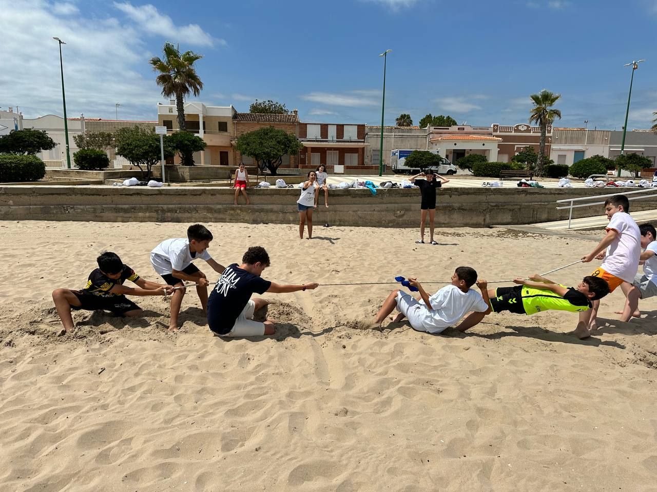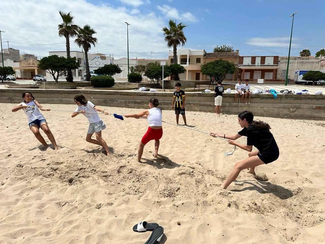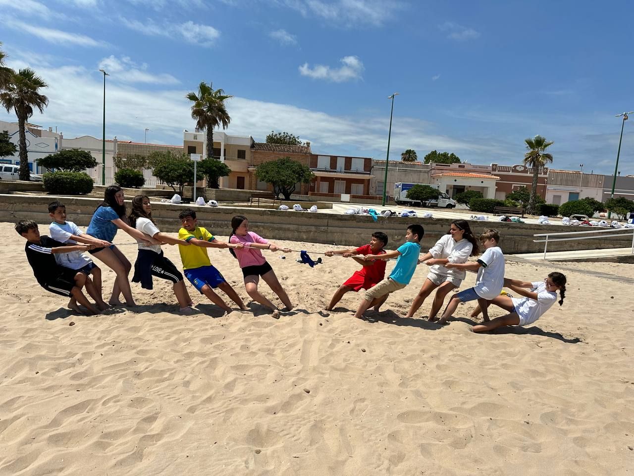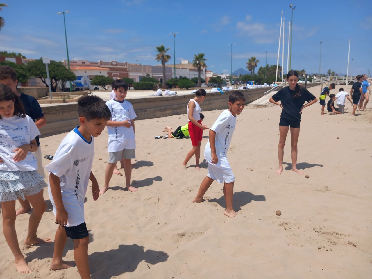 Después de la comida, los niños disfrutaron de un tiempo de descanso y luego se dirigieron a la playa para participar en la actividad "Scottish Highland Beach Games". Durante esta dinámica, los alumnos enfrentaron diversos desafíos propuestos por los profesores del programa de inmersión, inspirados en los tradicionales juegos escoceses.