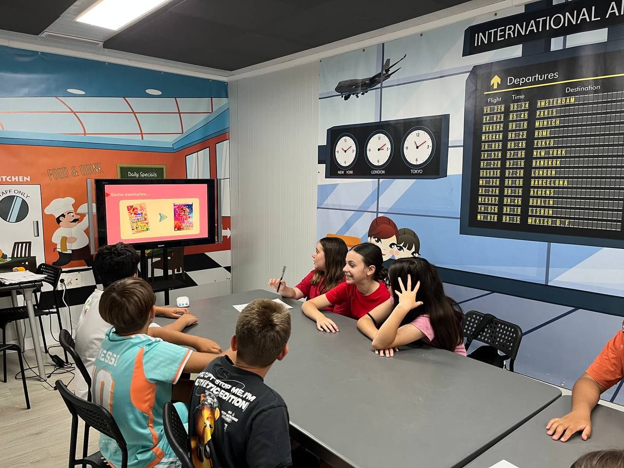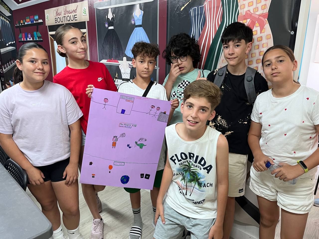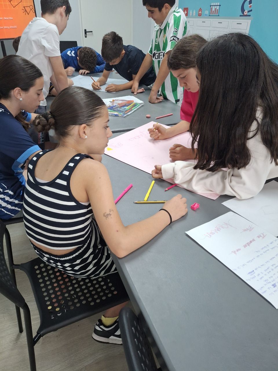 Al comenzar el día, los estudiantes exploraron el concepto de "remediation", que consiste en convertir una historia de un formato a otro, como adaptar un libro a una obra de teatro, película o incluso un videojuego. Durante la actividad, los alumnos aplicaron este concepto creando sus propias historias, siempre en inglés y con la orientación de los profesores del programa de inmersión.