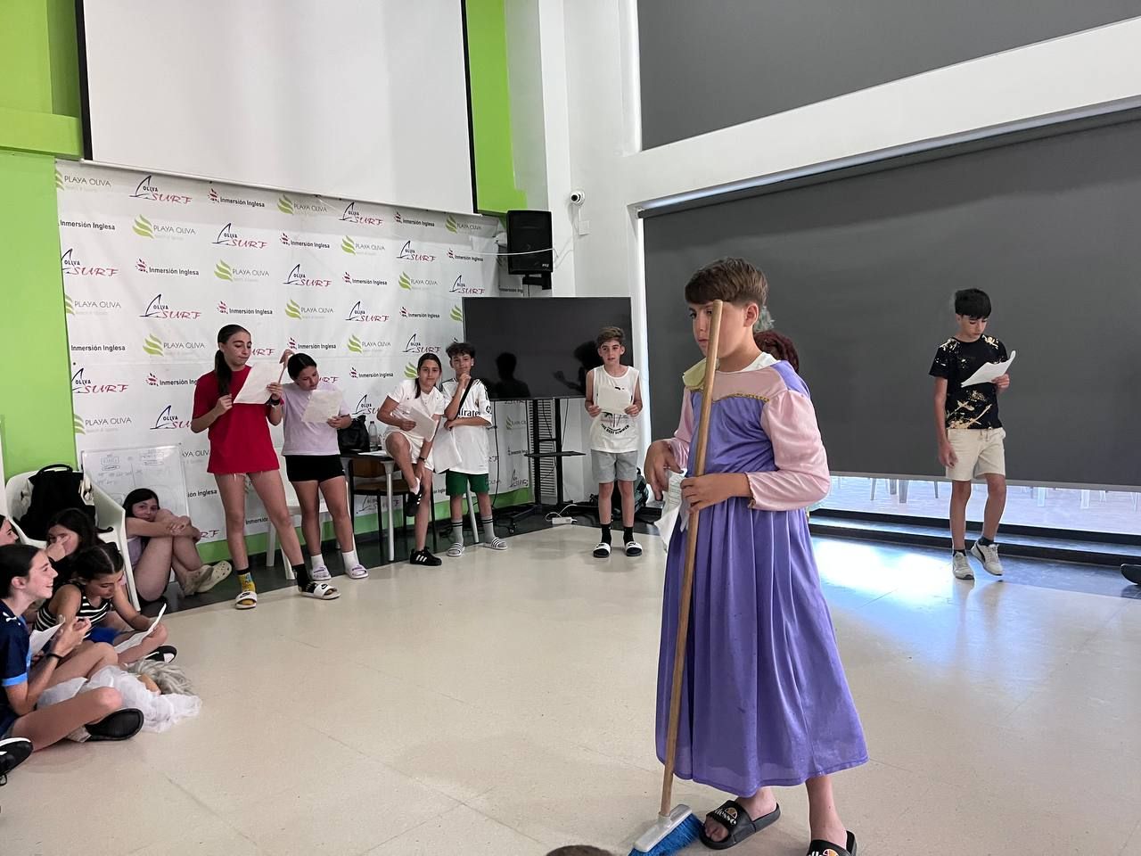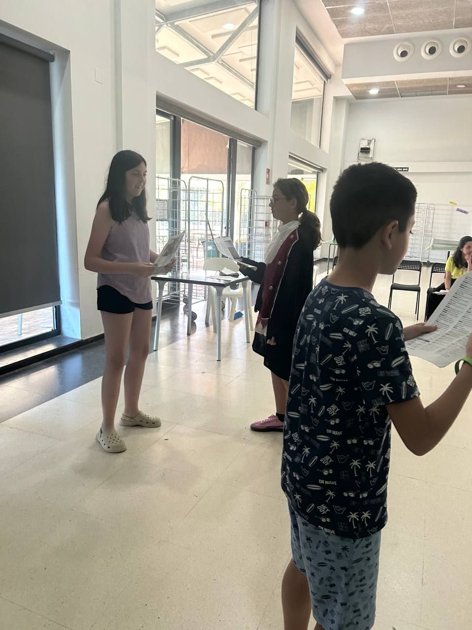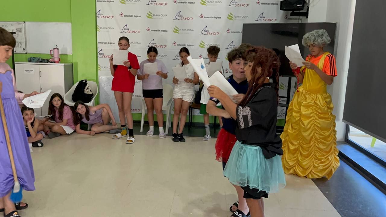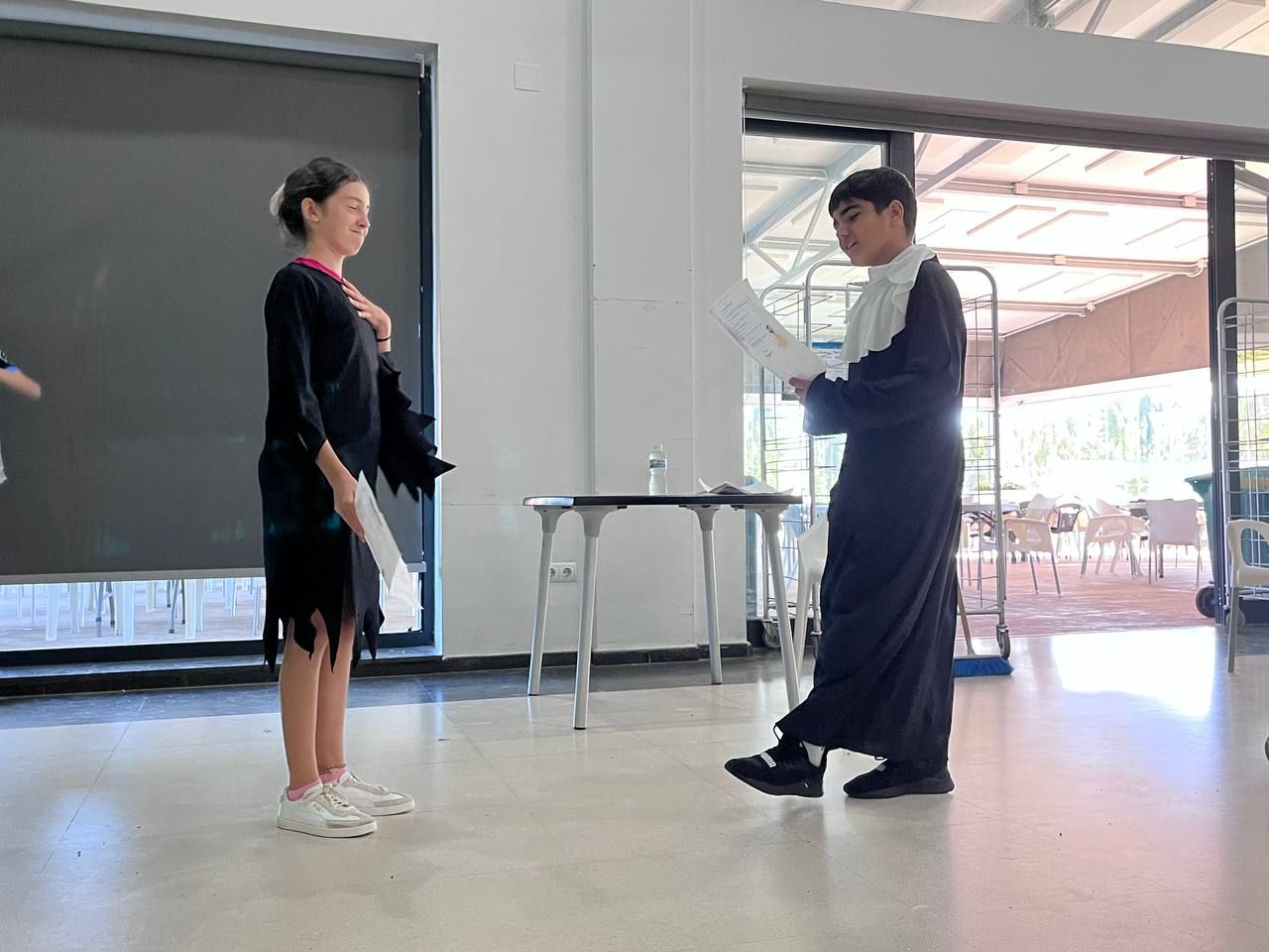 Tras la comida, los estudiantes pudieron practicar su inglés mientras desplegaban su talento actoral en el taller de "Theatre", donde interpretaron escenas de obras clásicas en inglés. Los alumnos se disfrazaron y se divirtieron al expresarse a través de los guiones propuestos. Esta experiencia, además de ser educativa, resultó muy divertida, permitiéndoles aprender de forma lúdica, mejorar su dominio del idioma y ganar confianza en el escenario.