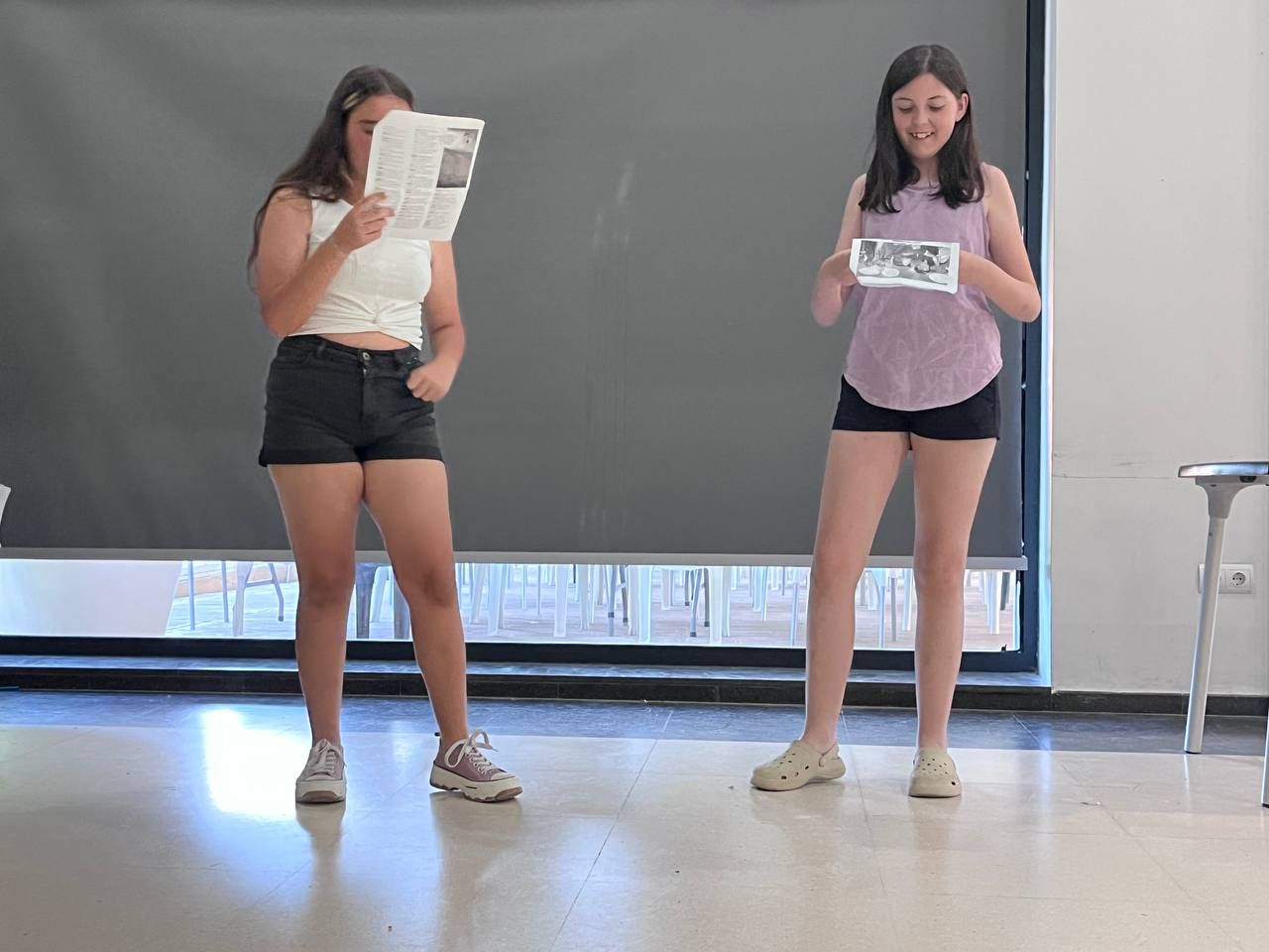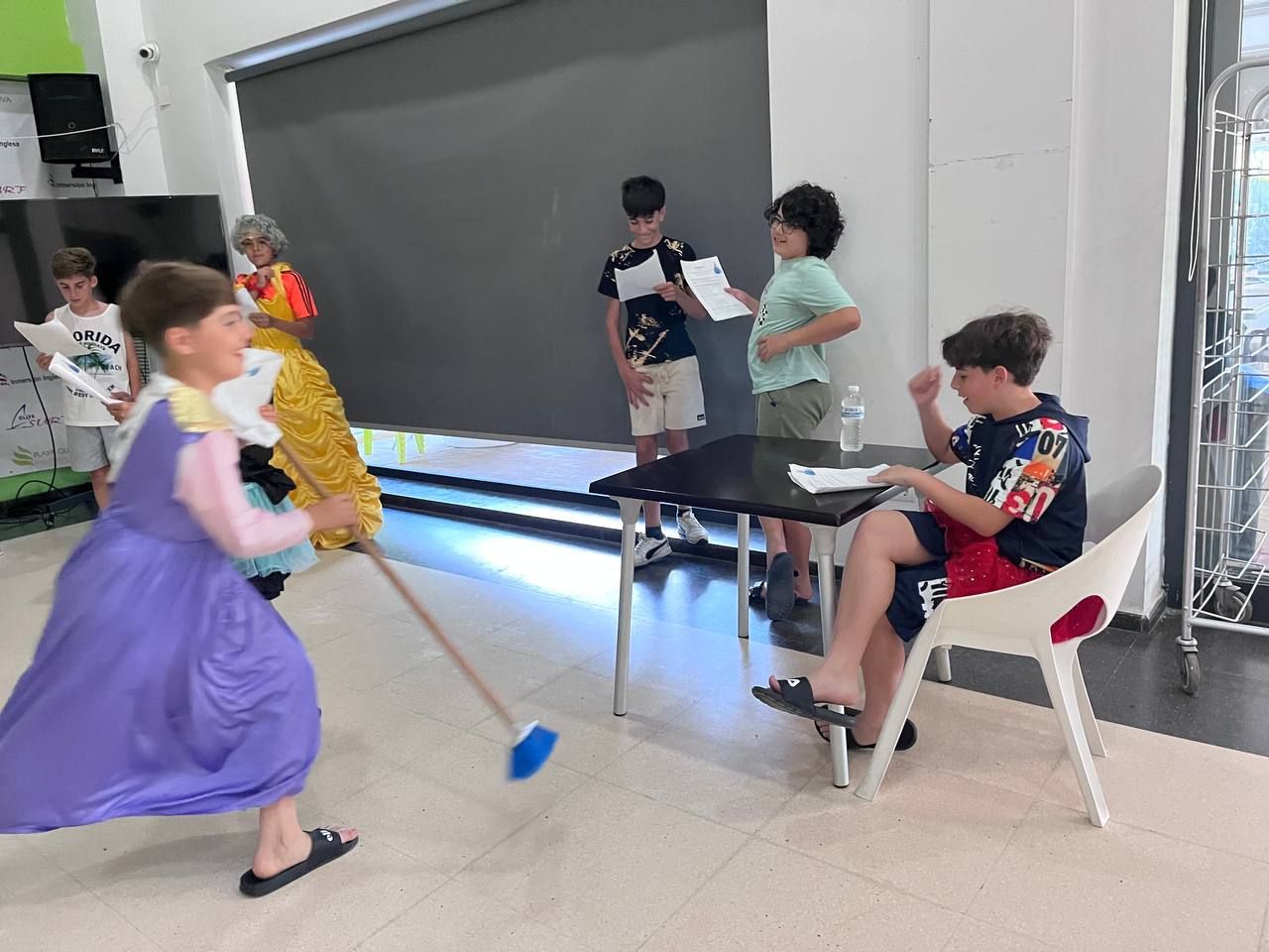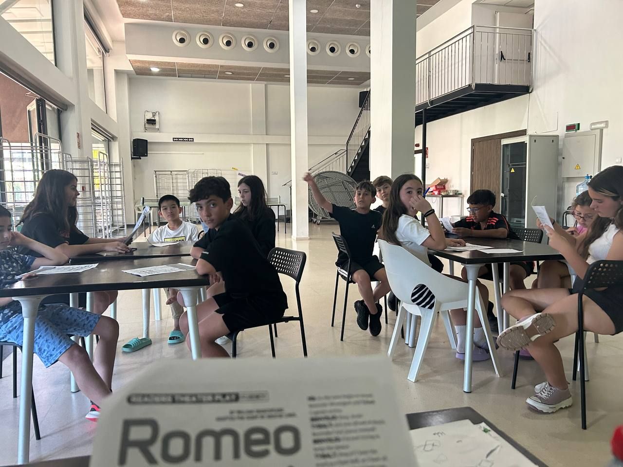 Tras la comida, los estudiantes pudieron practicar su inglés mientras desplegaban su talento actoral en el taller de "Theatre", donde interpretaron escenas de obras clásicas en inglés. Los alumnos se disfrazaron y se divirtieron al expresarse a través de los guiones propuestos. Esta experiencia, además de ser educativa, resultó muy divertida, permitiéndoles aprender de forma lúdica, mejorar su dominio del idioma y ganar confianza en el escenario.