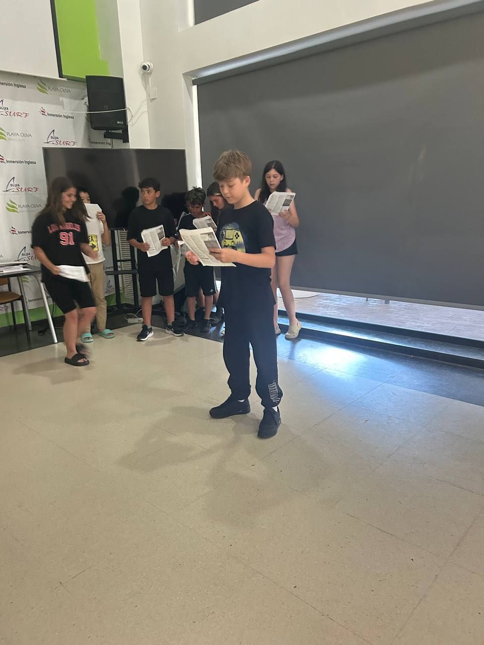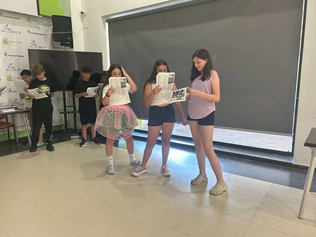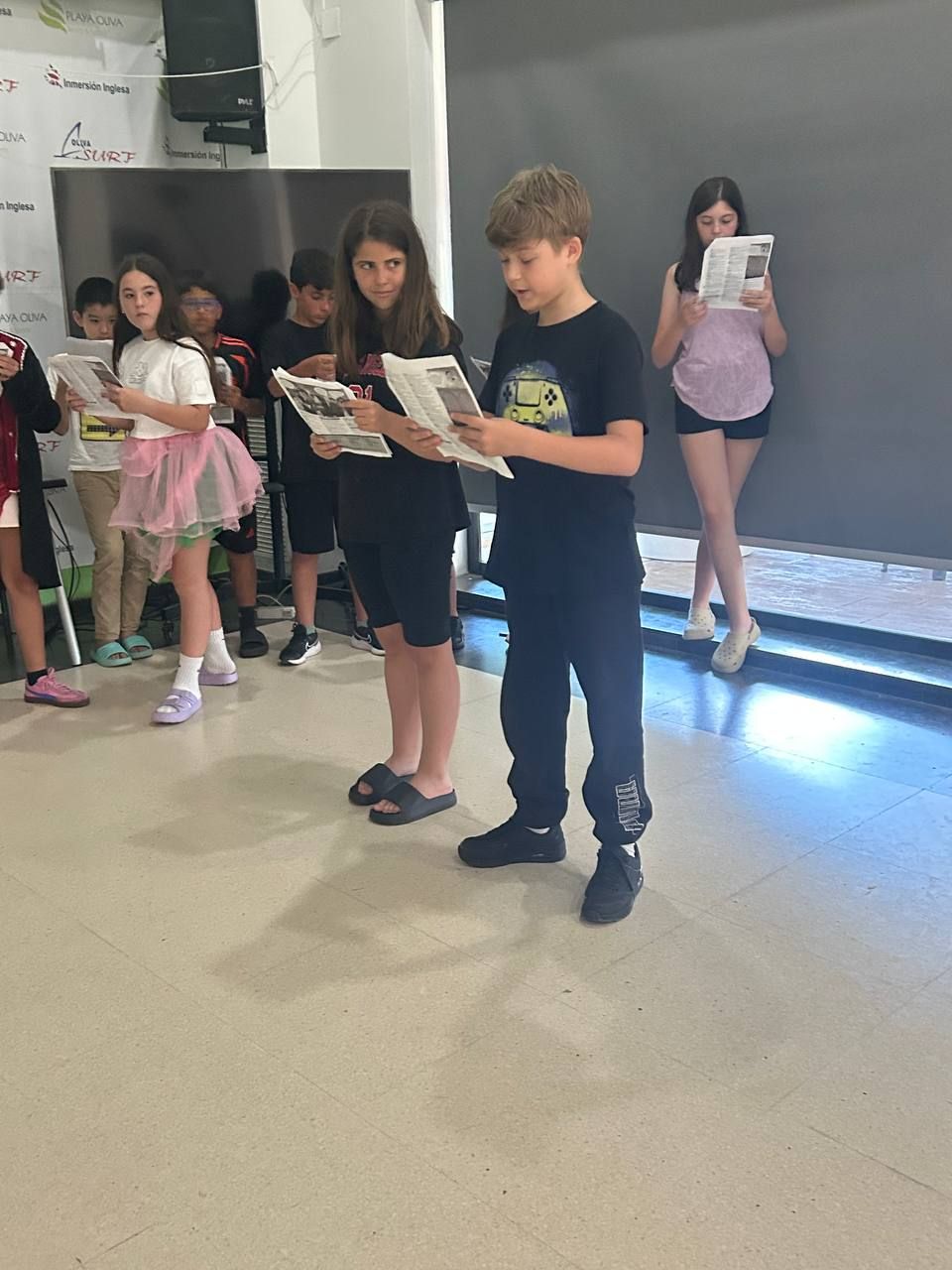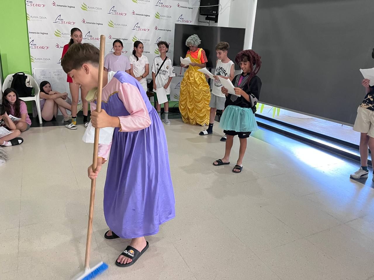 Tras la comida, los estudiantes pudieron practicar su inglés mientras desplegaban su talento actoral en el taller de "Theatre", donde interpretaron escenas de obras clásicas en inglés. Los alumnos se disfrazaron y se divirtieron al expresarse a través de los guiones propuestos. Esta experiencia, además de ser educativa, resultó muy divertida, permitiéndoles aprender de forma lúdica, mejorar su dominio del idioma y ganar confianza en el escenario.